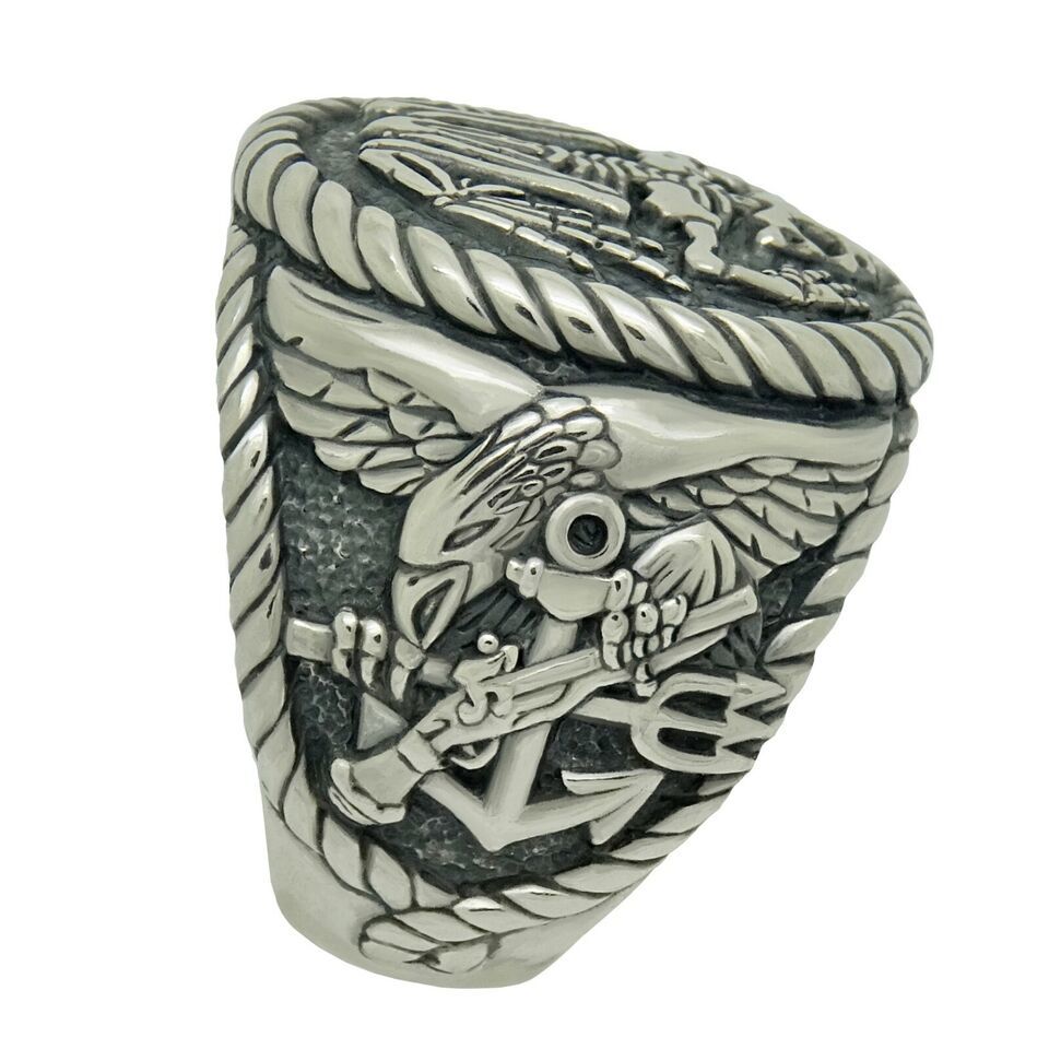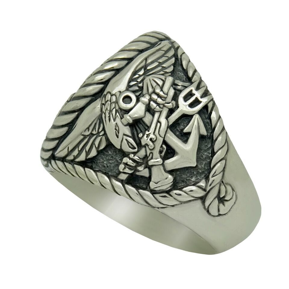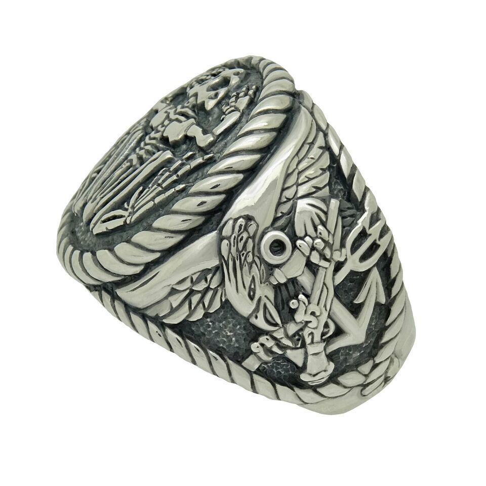 FROGMAN COMBAT DIVER US NAVY SEALS SCUBA STERLING SILVER .925 MEN'S RING