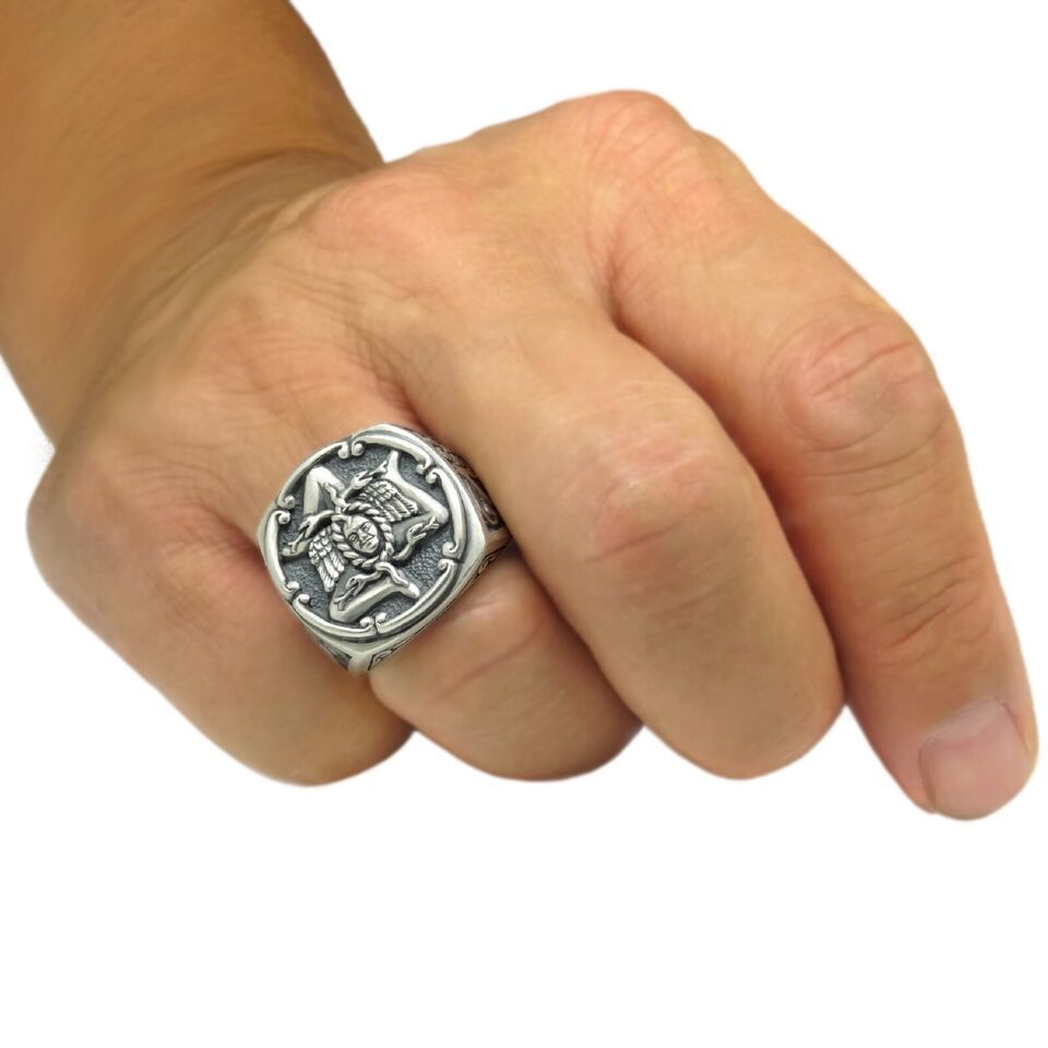 Medusa Triskelion Sicilian Sterling Silver 925 Men’s Ring Handmade Trinacria