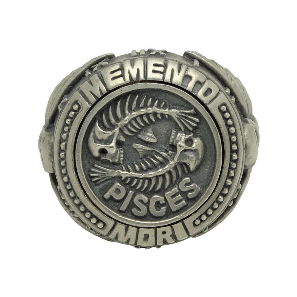 Sterling silver custom made Pisces ?memento mori? zodiac skull horoscope men's ring