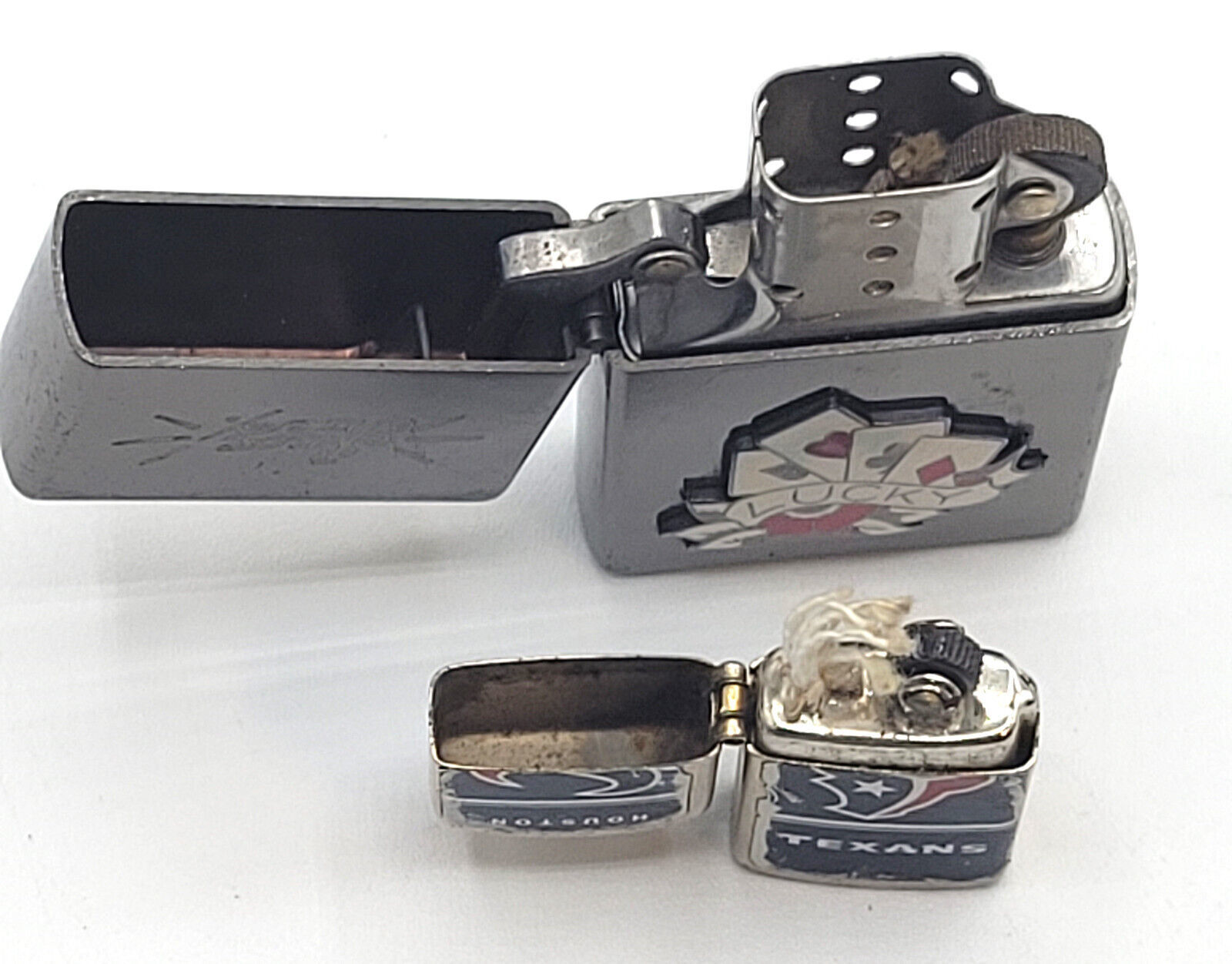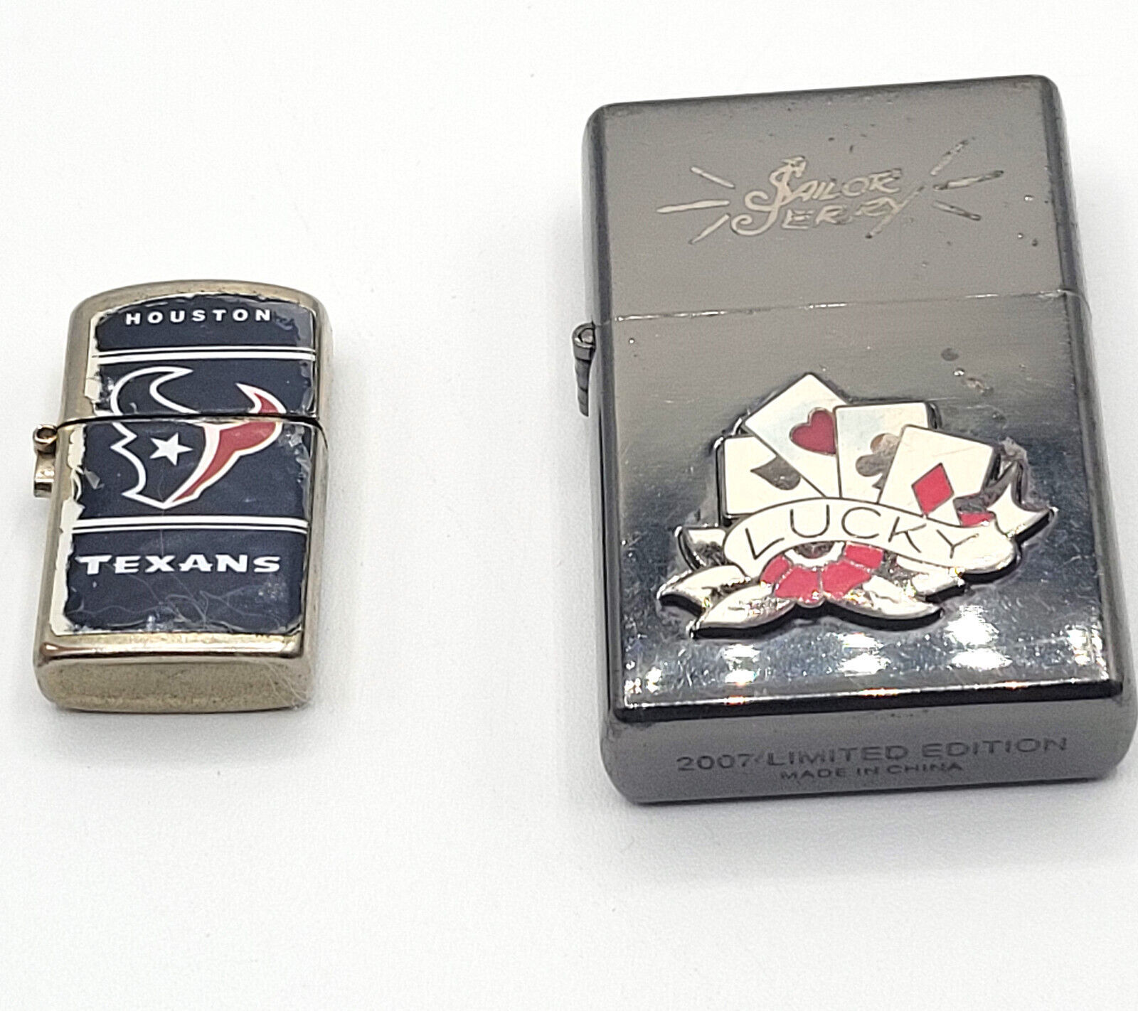 2 Vintage Promotional Cigarette Lighters Houston Texans, Sailor Jerry