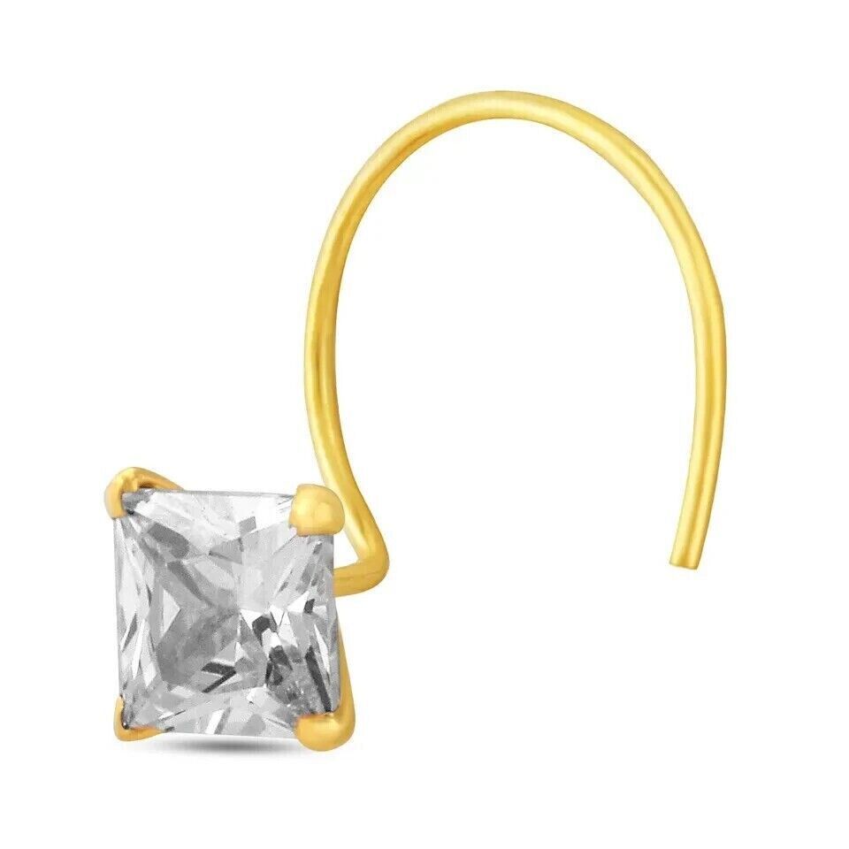 0.50Ct Princess Cut Lab Created Diamond Piercing Nose Pin 14k Yellow Gold Plated