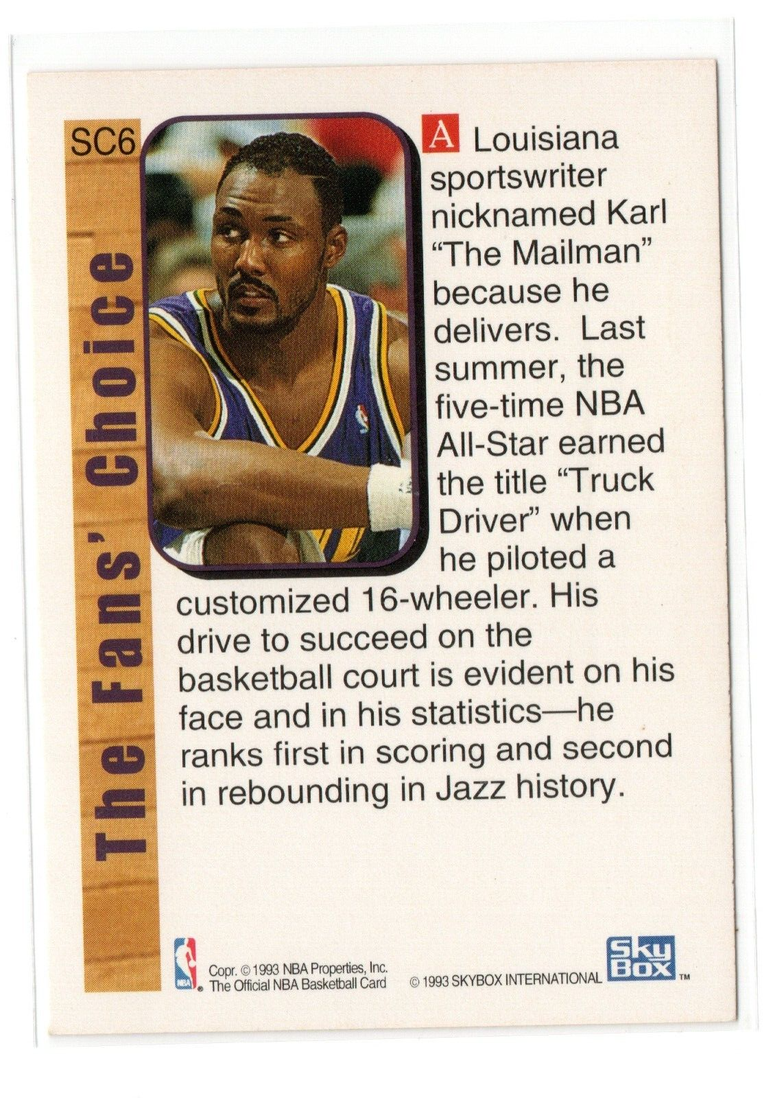 1992-93 NBA Hoops Supreme Court Karl Malone #SC6 Insert Utah Jazz NBA HOF NM