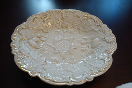 Antique Meissen Plate, signed by artist, molded with touches of gold. c1860s[#42