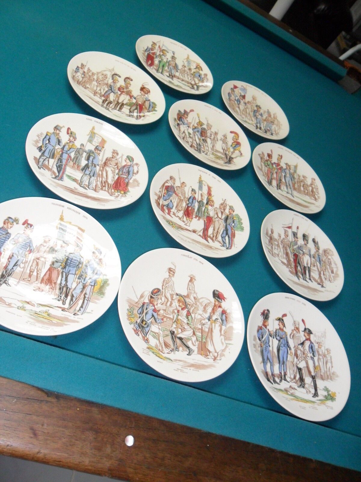 Faience Hanging 11 Plates MILITARY Utzschneider 1920 Sarreguemines ORIGINAL