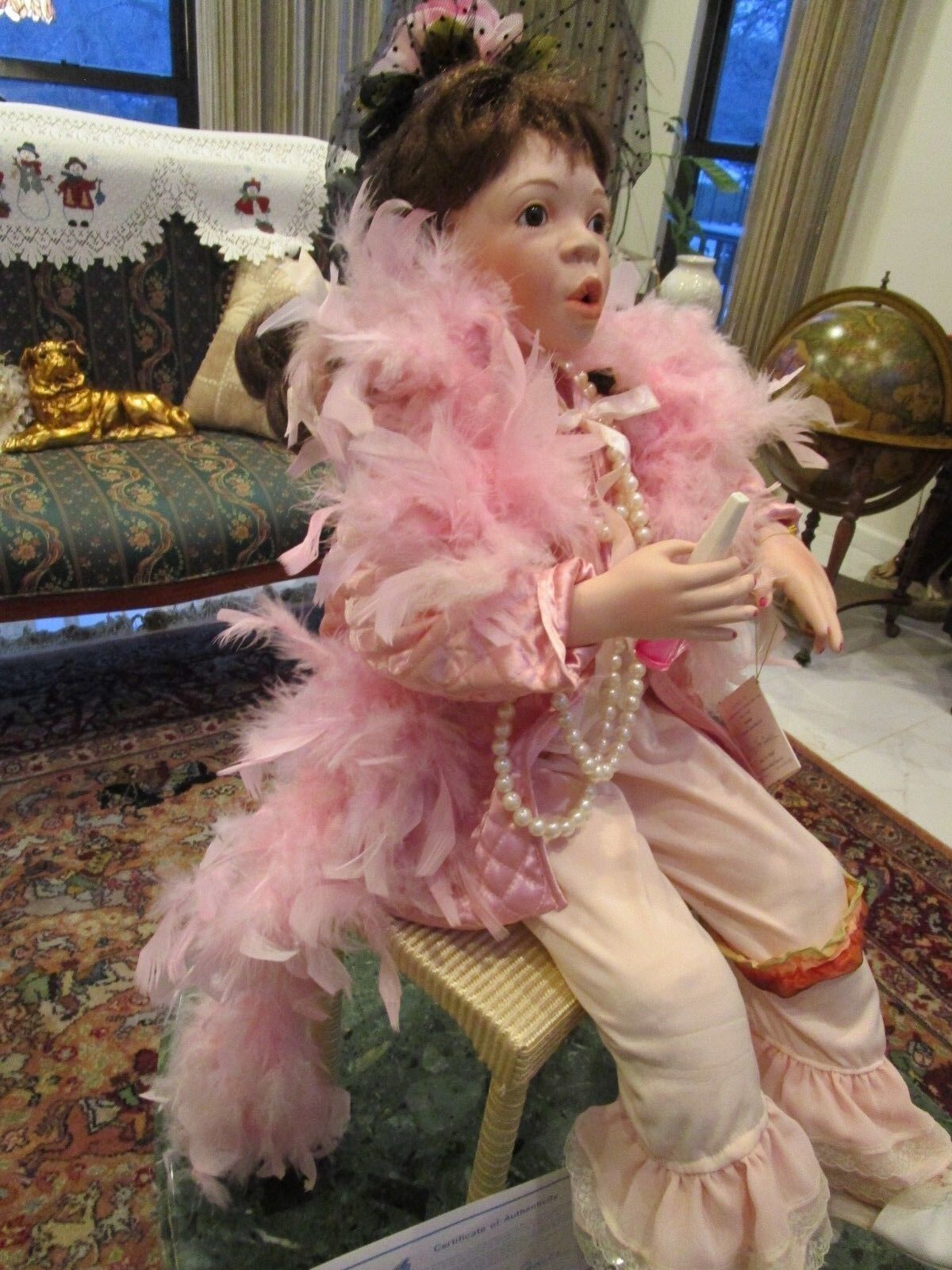 MARY VAN OSDELE "MAXINE" DOLL PLAYING DRESS UP COLLECTION SIGNED 28" WITH BENCH AND ALL ACCESSORIES, ONE PIECE OF HER EARRING IS MISSING, VERY TINY, BUT IS MISSING, VERY GOOD CONDITION, IT IS NEW, IN ORIGINAL BOX, FROM A CLOSING STORE NEVER SOLD, COUPLE OF TIMES OUT OF THE BOX FOR SHOWING a4woodrack