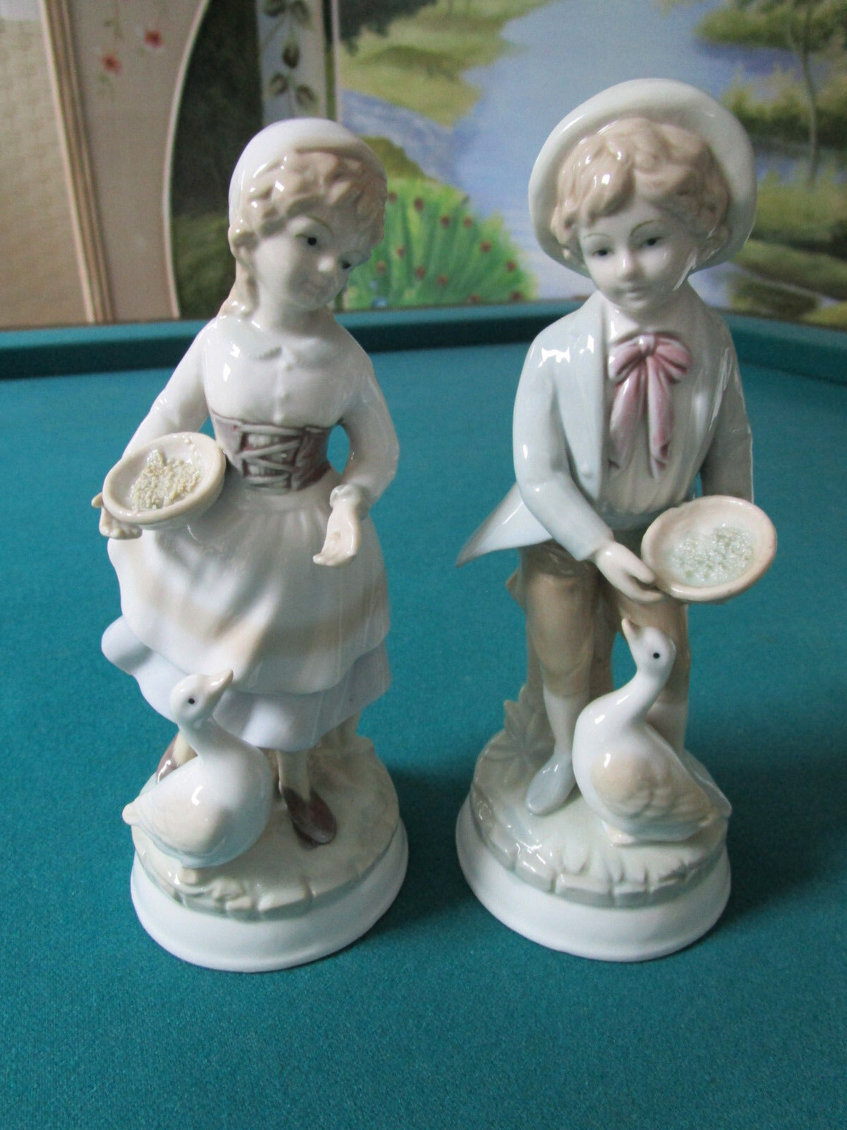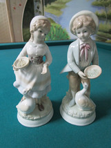 ANTIQUE ARDALT JAPAN PORCELAIN FIGURINES BOY AND GIRL FEEDING DUCKS 8" orig
