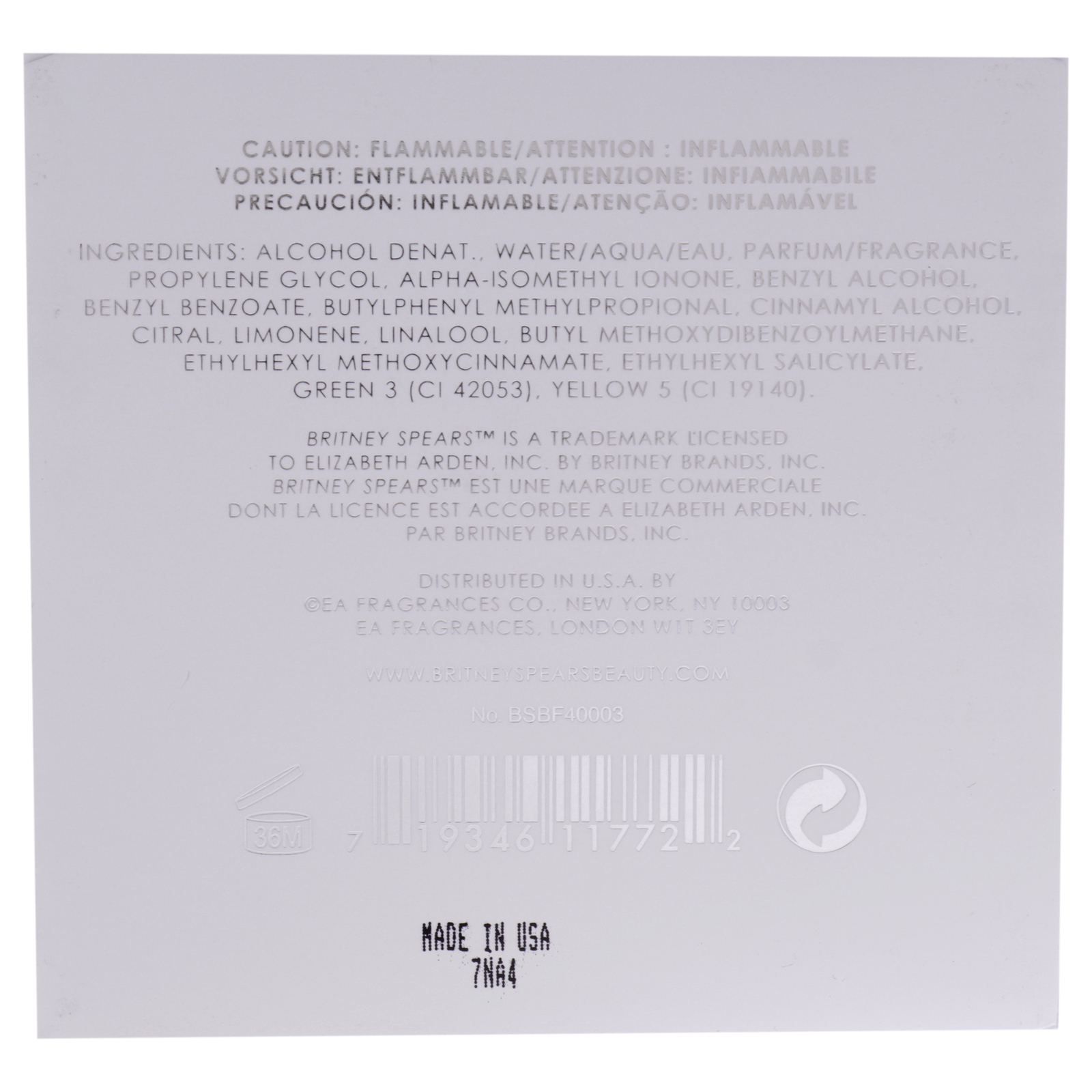 Launched by the design house of Britney Spears in year 2007. This feminine fragrance has a blend of guava, tangerine, honeysuckle, linden, patchouli, amber, and sweet praline notes.