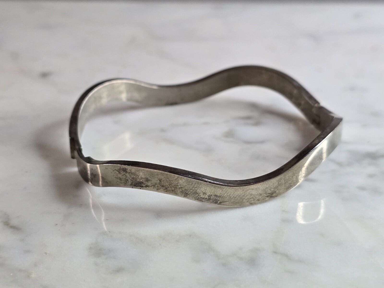 A WOMENS VINTAGE ESTATE STERLING SILVER BANGLE BRACELET. THE BRACELET WEIGHS 3.5g AND MEASURES 1/4" WIDE. THE INNER CIRCUMFERENCE MEASURES ABOUT 7". MAKES A GREAT GIFT FOR THAT SOMEONE SPECIAL. ANY QUESTIONS, PLEASE ASK. BE SURE TO CHECK OUT OUR OTHER ITEMS FOR SALE.