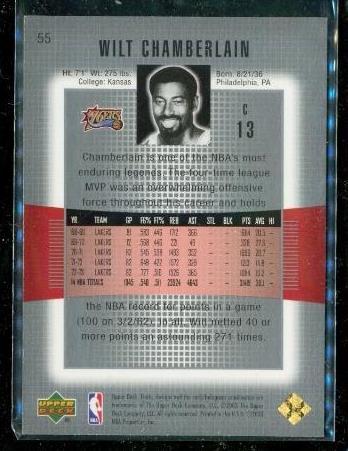 2003-04 Upper Deck Finite Gold 189/299 Wilt Chamberlain #55 HOF 76ers Basketball