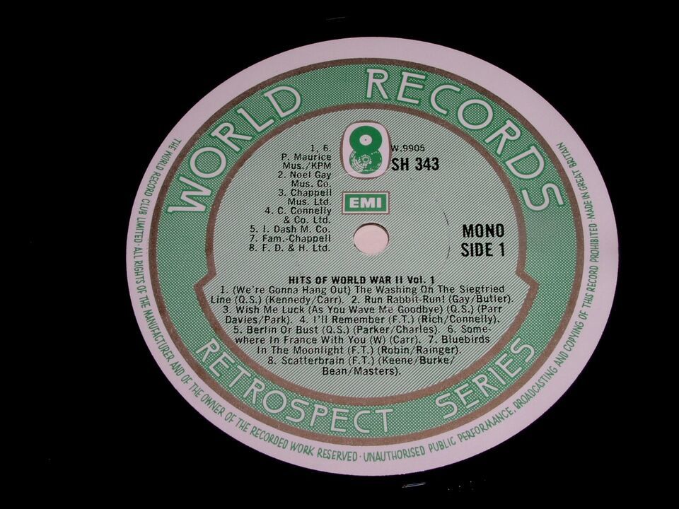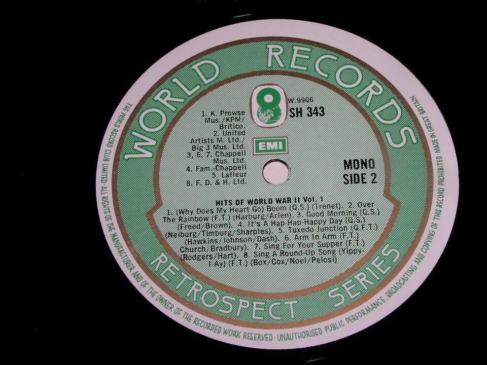 This is a vintage UK import phonograph record album entitled, "Hits Of World War II". The Great British Dance Bands 1939-1940. Retrospect Series. Record label: EMI World Records SH 343. Come with its original inner sleeve as shown.