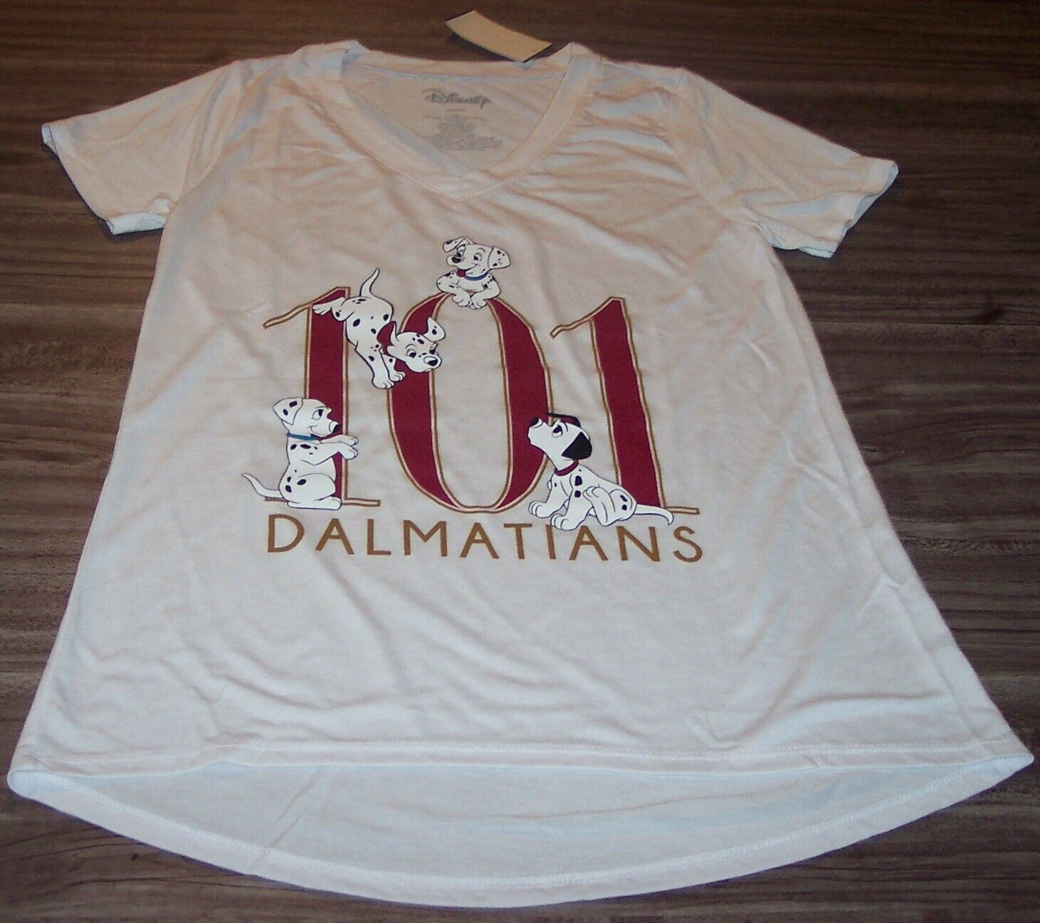 WOMEN'S TEEN Walt Disney 101 Dalmatians Dogs T-shirt XS White NEW w/ TAG