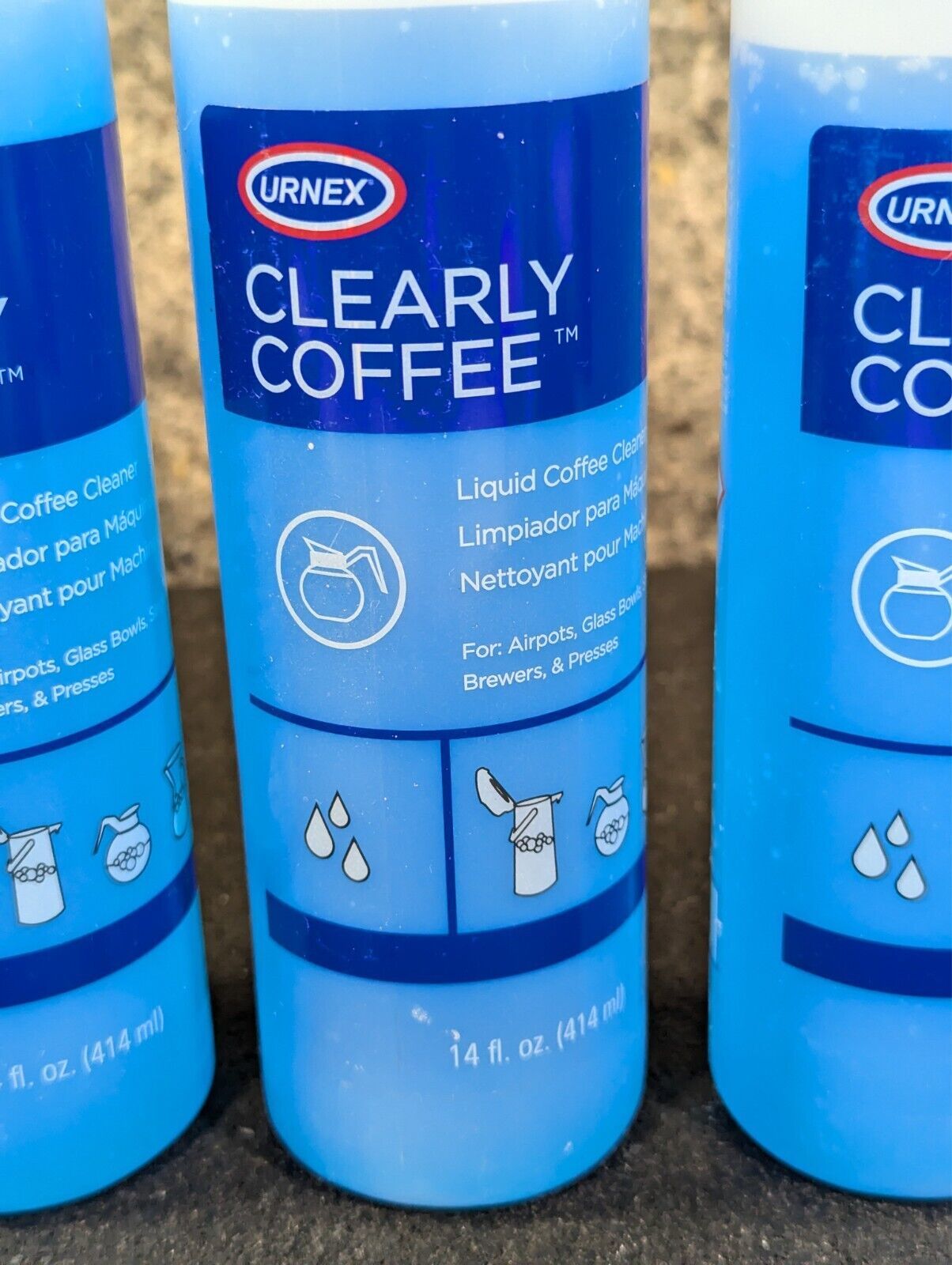 3 Urnex Clearly Liquid Coffee Pot Cleaner - Glass Bowls, Airpots & Brewers 14 Oz