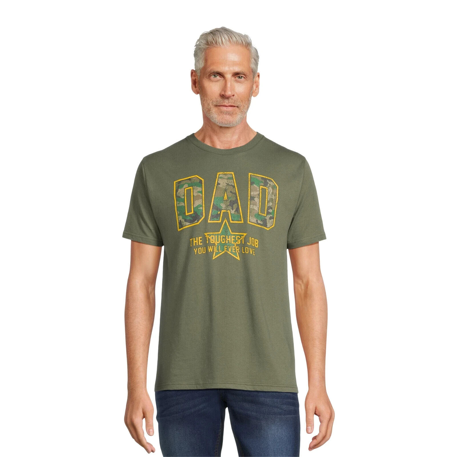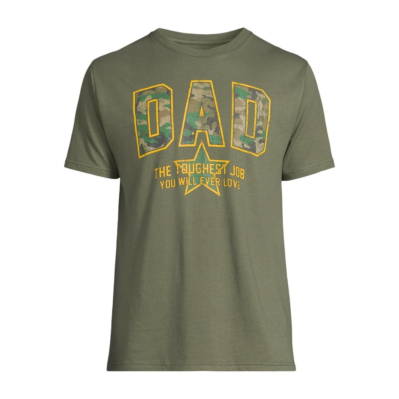 There's no mission tougher ? or more rewarding ? than being a dad. Celebrate Father?s Day in style with the Men's Military Dad Tee Shirt from Way To Celebrate! This eco-friendly soft-knit cotton blend top is designed for all-day comfort and casual wear on Father's Day and beyond. It features a bold, military-inspired front graphic print with "Dad" in camouflage lettering, and the words "The Toughest Job You'll Ever Love" below for the hero in your life. The perfect gift for any dad, easily pair this tee with jeans, pants or shorts for classic and versatile styling.
