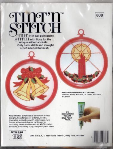 Vintage Tint N Stitch Christmas Craft Kit Bells and Candles Studio Twelve