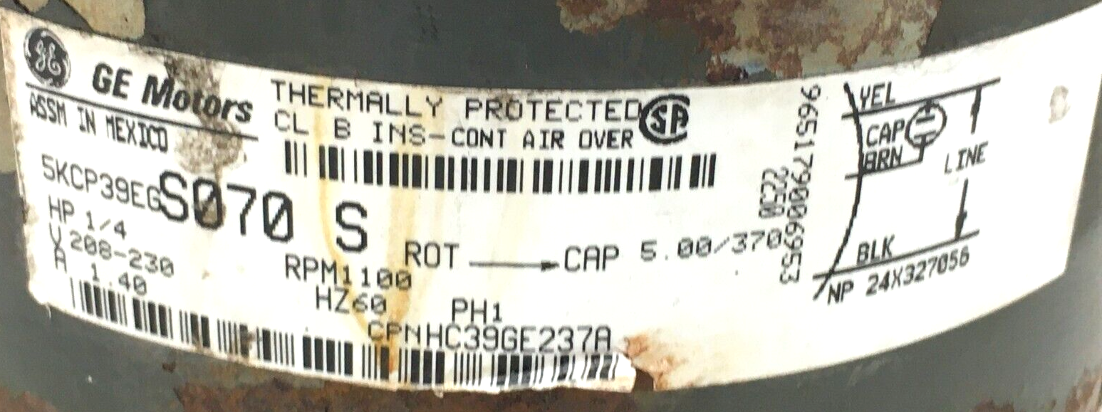This is GE 5KCP39EGS070S Carrier HC39GE237A Condenser Fan Motor 1/4 HP 208/230V 1100RPM used part.