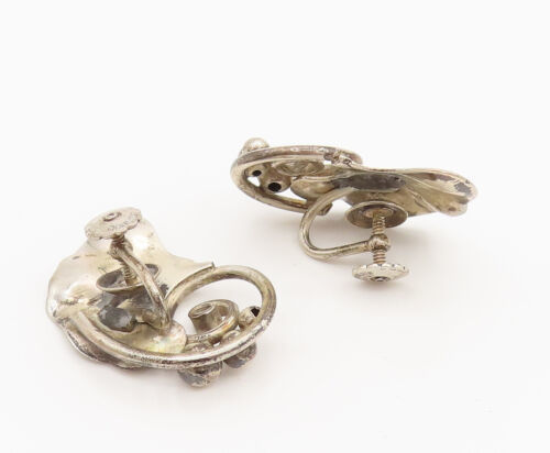 GEORG JENSEN 925 Silver - Vintage Spiral Leaf & Beads Screw On Earrings- EG12390