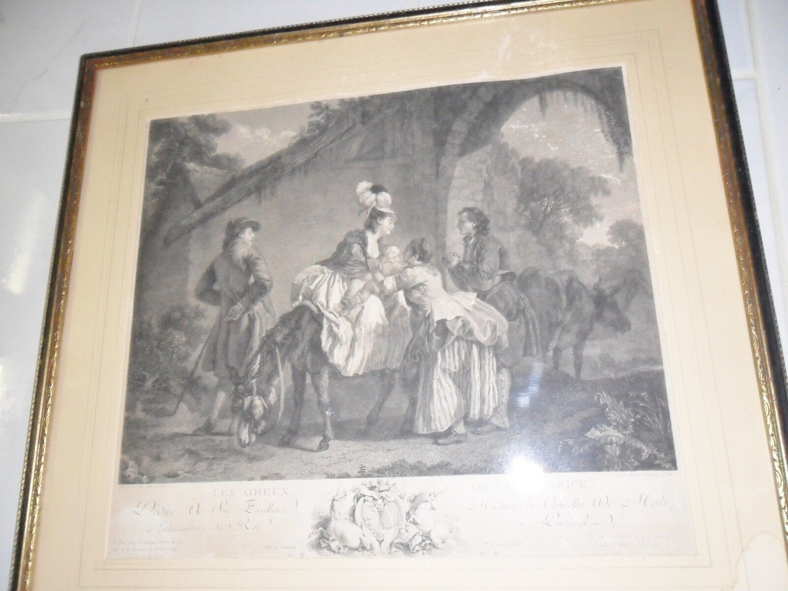 "Les adieux a la Nourrice" French line engraving print c1770s by Aubry, Etienne