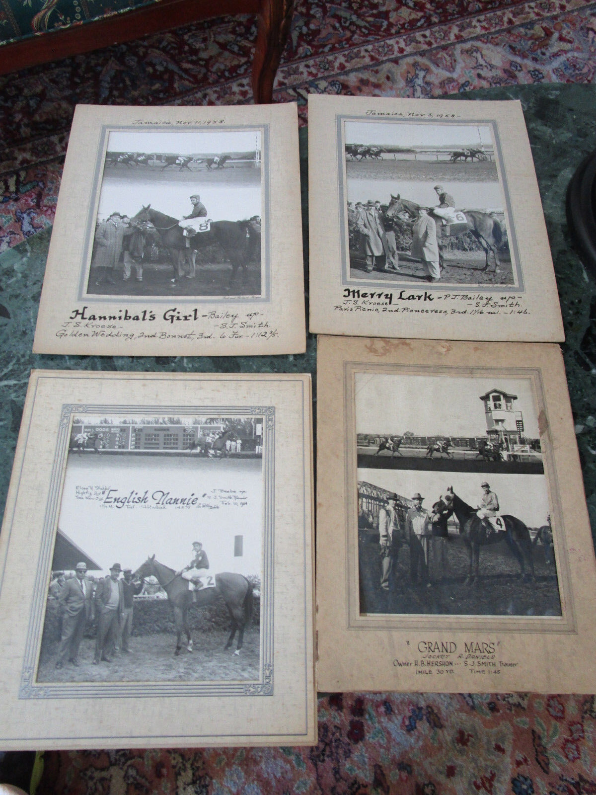 HORSERACING 1950/1960s JOCKEY HORSE 4 PHOTOS 7 1/2 X 9 1/2 VERY GOOD CONDITION, SOEM SCRATCHES COMMENSURATE WITH AGE