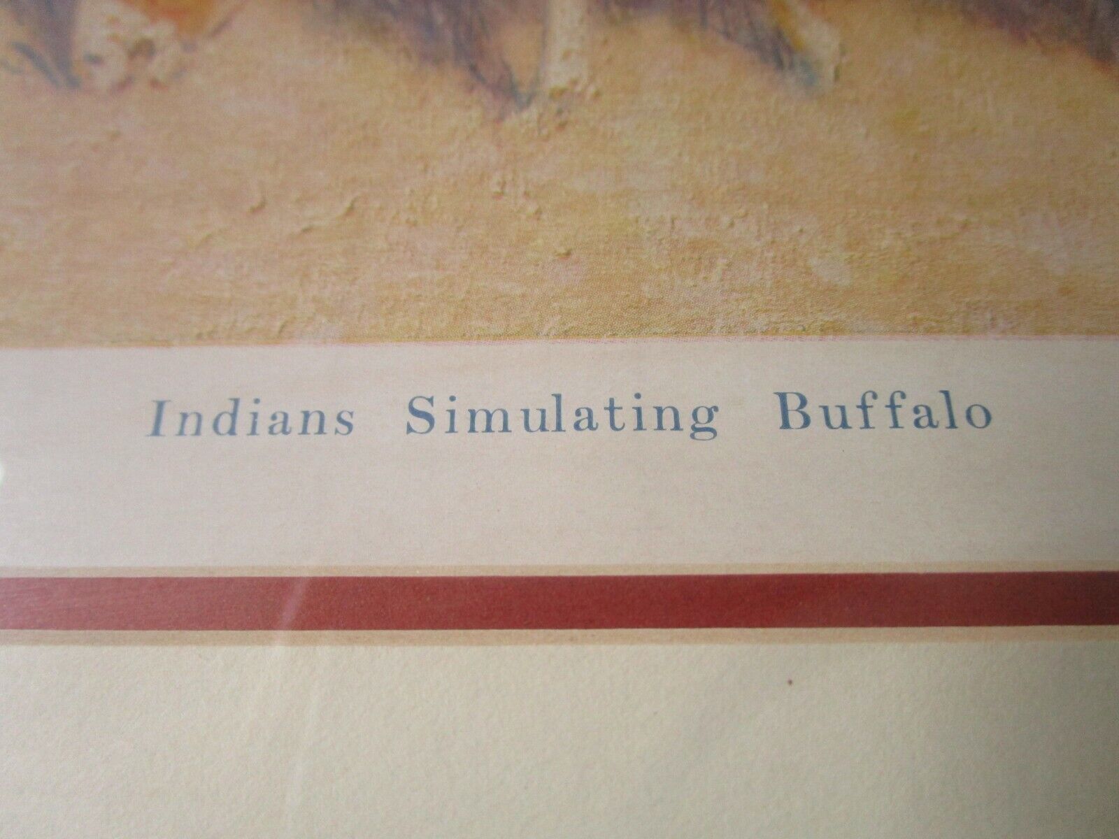 3- "INDIAN SIMULATING BUFFALO" PRINT, BY FREDERICK REMINGTON, PROFESSIONALLY FRAMED 19 X 16" ART IS 10 1/2 X 6 1/2"
