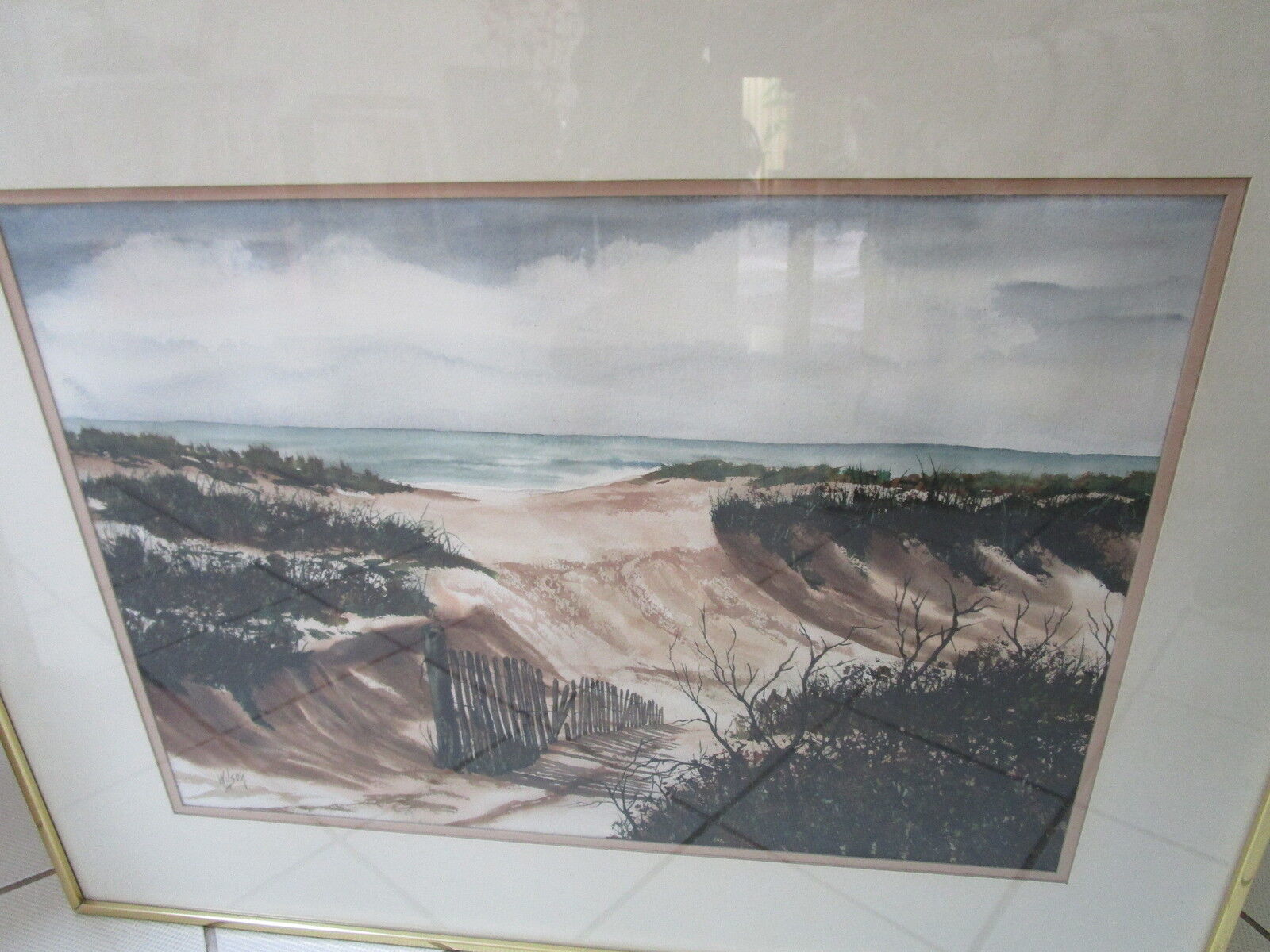 Original watercolor signed "Wilson" Dunes and Sand, Beach Original Ocean Painting, Beach Landscape, frame is 29 x 22 and art is 25 x 18, plastic cover