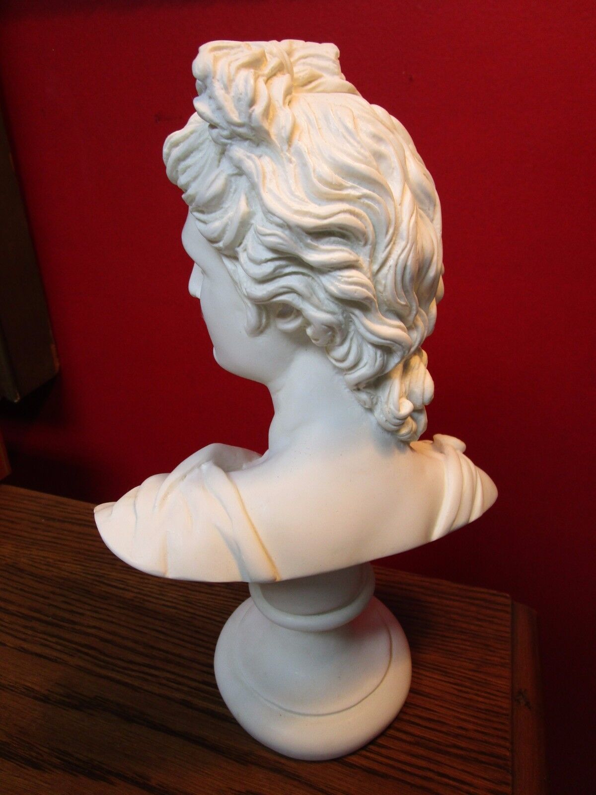 CHALKWARE APOLLO BUST 13" TALL IN ROUND BASE