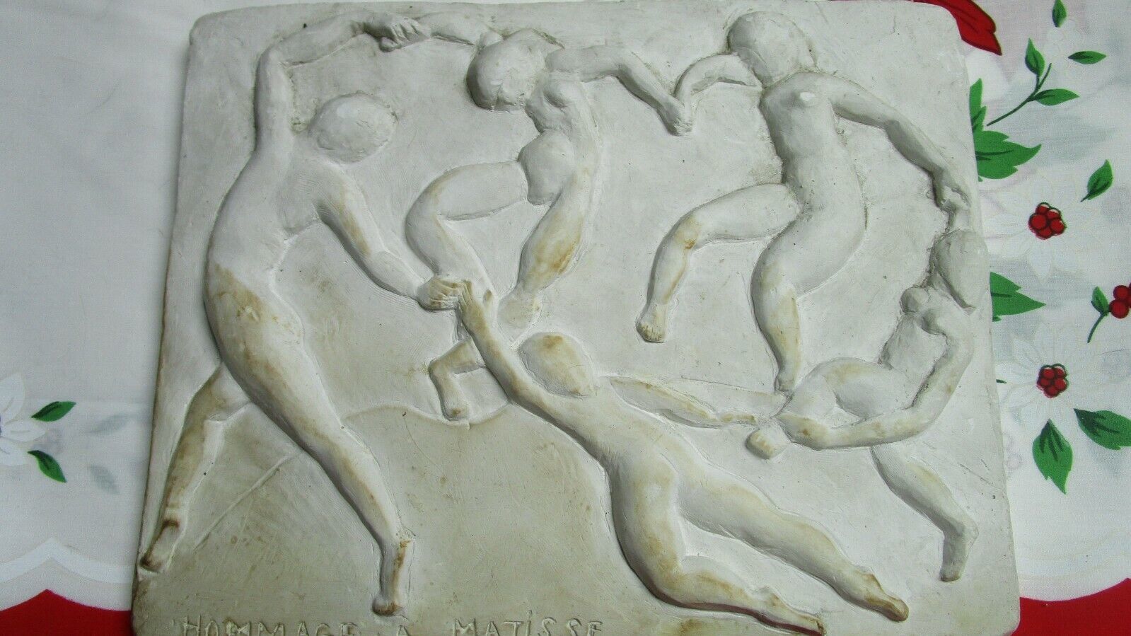 Arline Wingate Signed Figural PLASTER PLAQUE 1976 HOMMAGE TO PICASSO / MATISSE PICK1