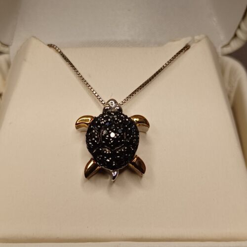 VTG JcPenney SG Sterling Silver and 14k gold -Black Turtle Necklace- 18 in Chain