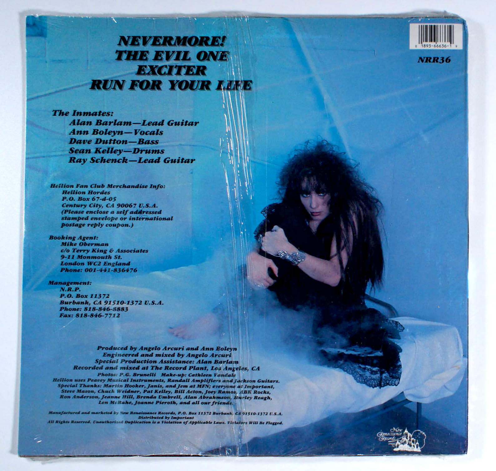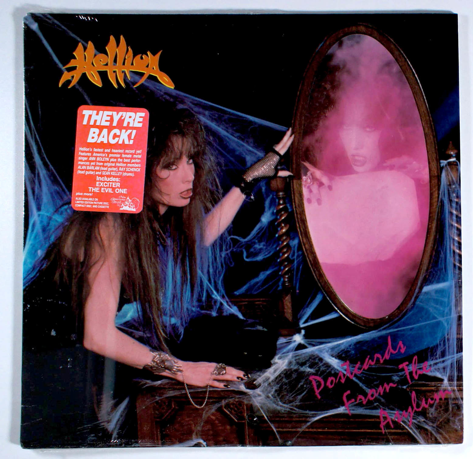 Postcards From the Asylum was Hellion's fastest and heaviest record yet! It features America's premiere female metal singer Ann Boleyn plus the best performances yet from original Hellion members Alan Barlam (lead guitar), Ray Scheneck (lead guitar) and Sean Kelley (drums). At one point Hellion's remake of the Judas Priest track Exciter, was listed on the play-lists of over 124 radio stations. Two months later, despite being over seven minutes long, The Evil One surpassed the earlier single, boasting listings on 128 U.S. stations.