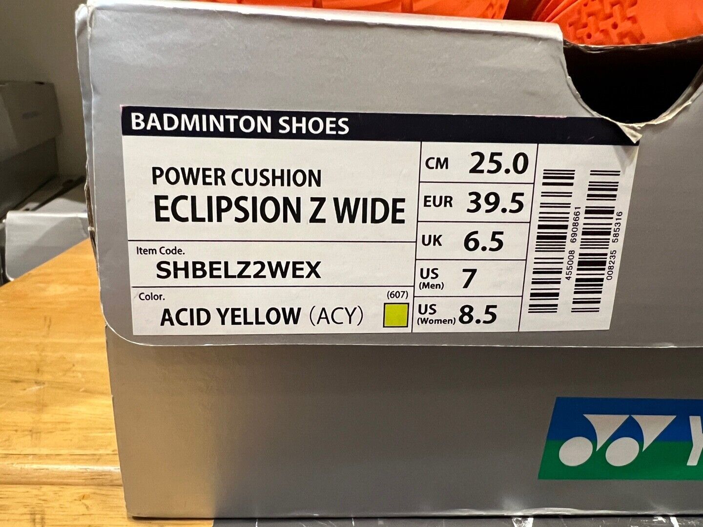 Main Features ---Brand : YONEX ---Gender : Unisex Adults ---Material : Synthetic Fiber, E.V.A, Rubber ---MPN : SHBELZ2WEX ---Color : Acide Yellow ---Size : 250mm=7(US/Men)=8.5(US/Women)=6.5(UK)=39.5(EU) 280mm=10(US/Men)=9.5(UK)=44(EU)