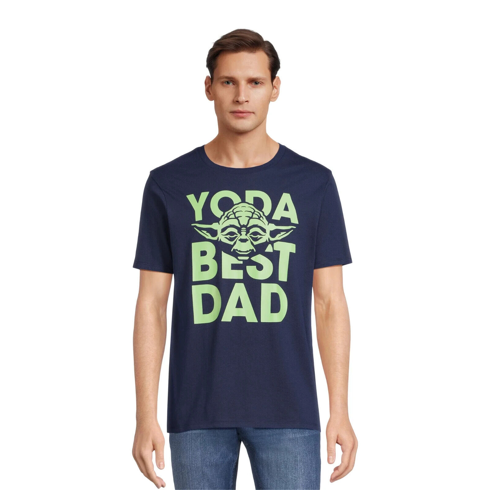 Star Wars Yoda Best Dad Apparel Men's Graphic T-Shirt, Blue Size XL(46-48)