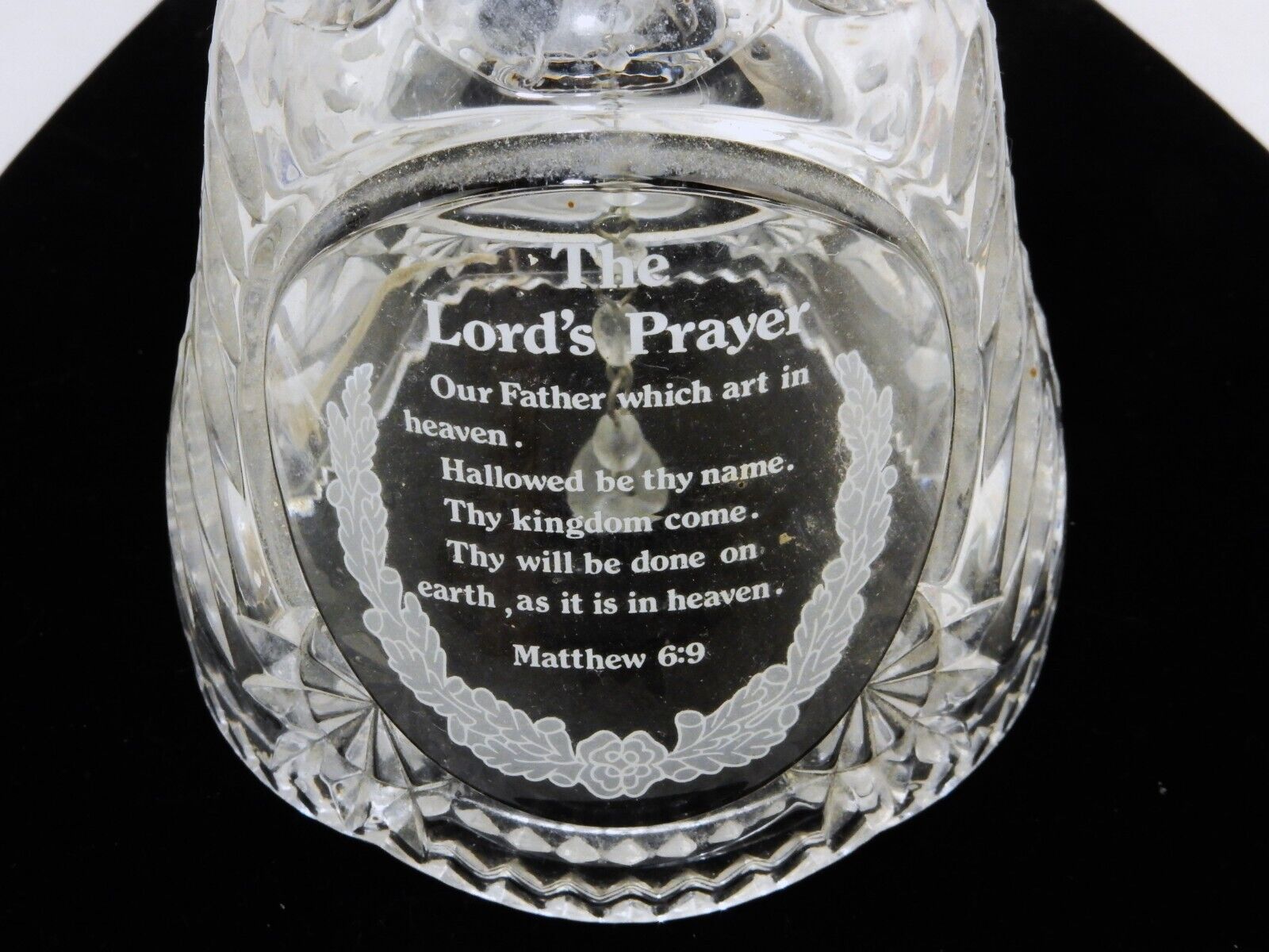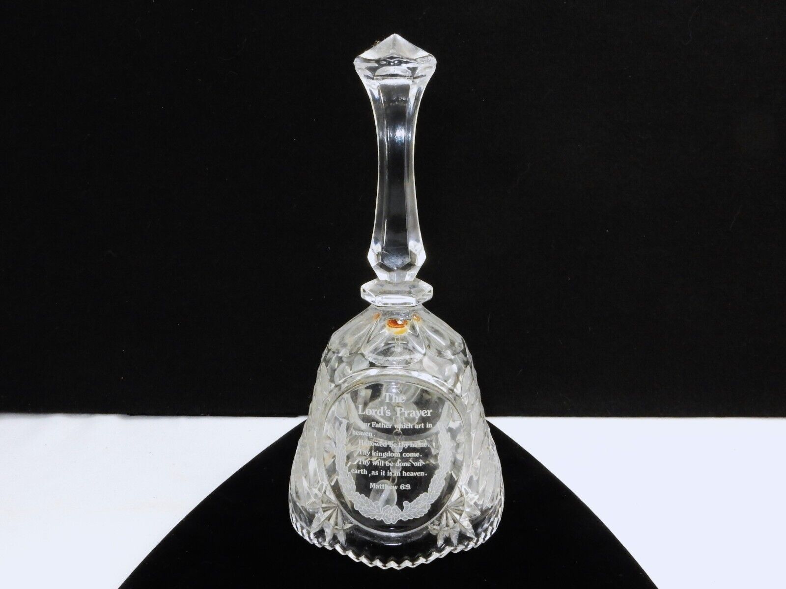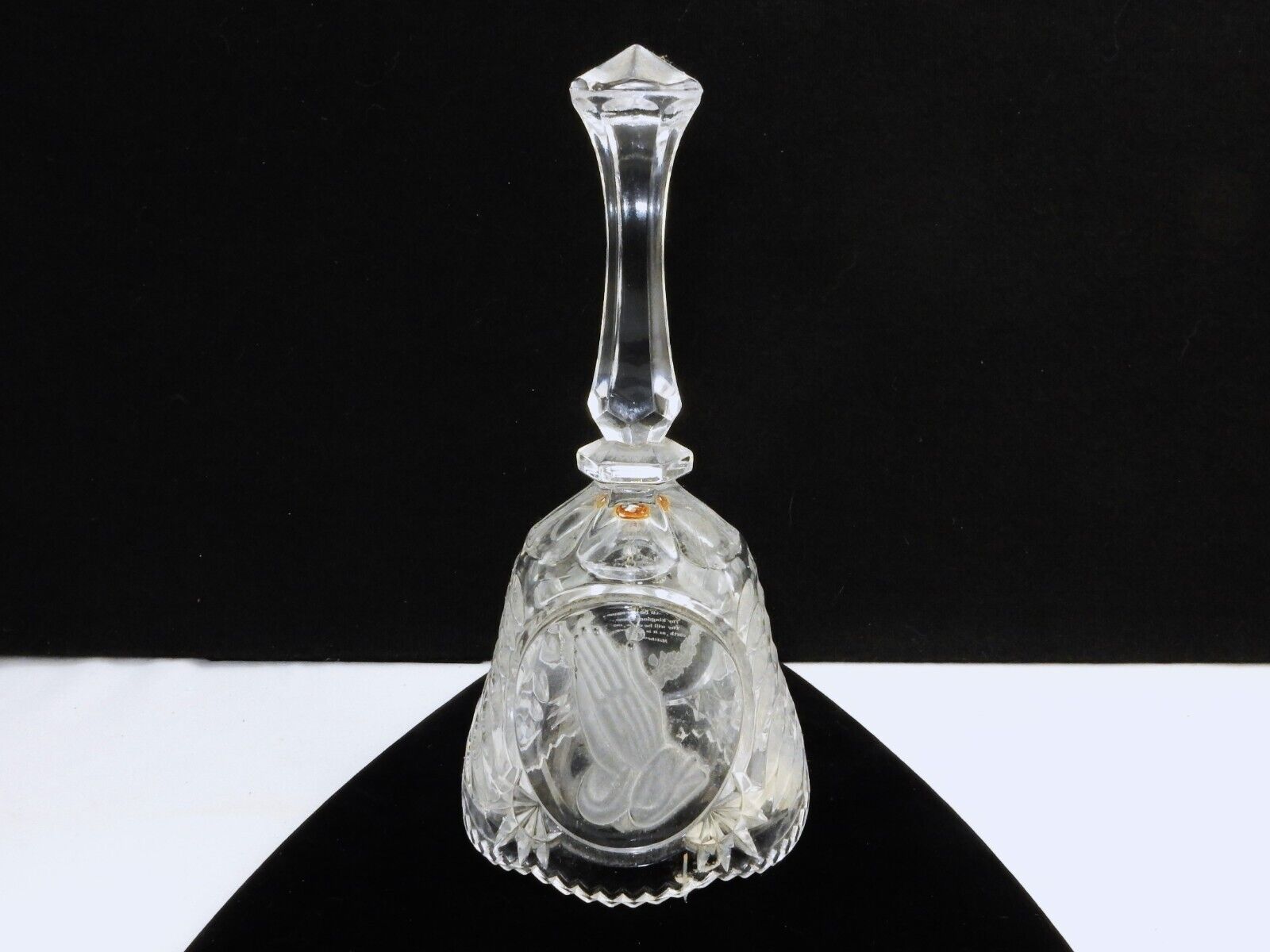 Large Glass Hand Bell, Praying Hands, Lord's Prayer, Sawtooth, Thumbprint Collar