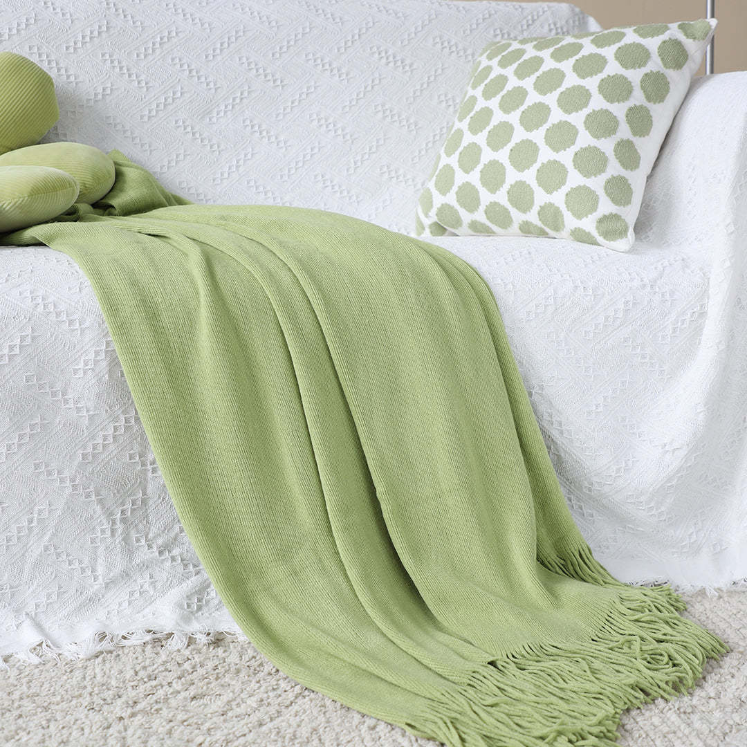 SOGA Green Acrylic Knitted Throw Blanket Solid Fringed Warm Cozy Woven Cover Cou