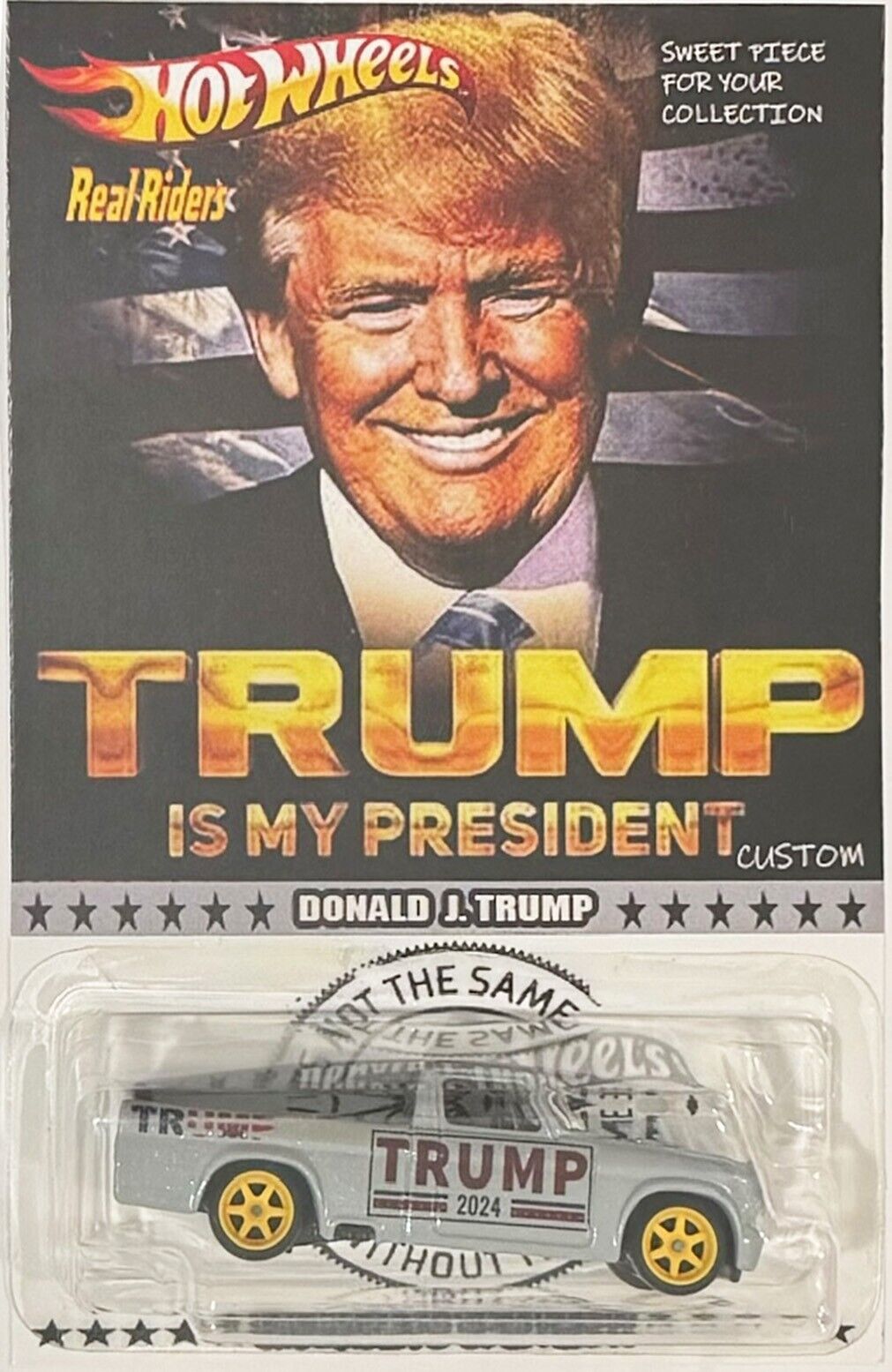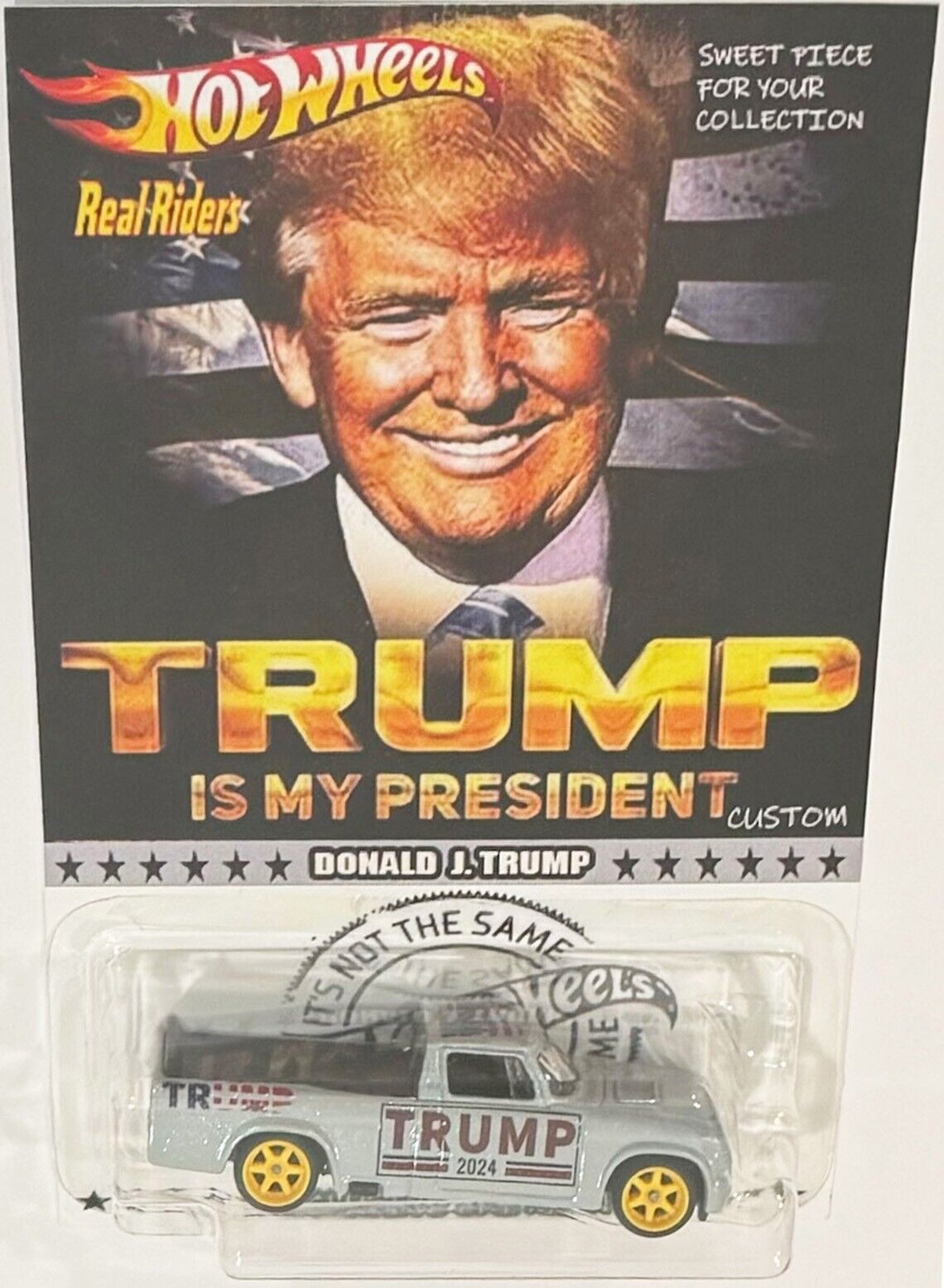 Silver '63 Studebaker Champ 2024 Donald Trump MAGA Series Custom Hot Wheels Exclusive Limited Edition Car w/ Real Riders Rubber Tires.
