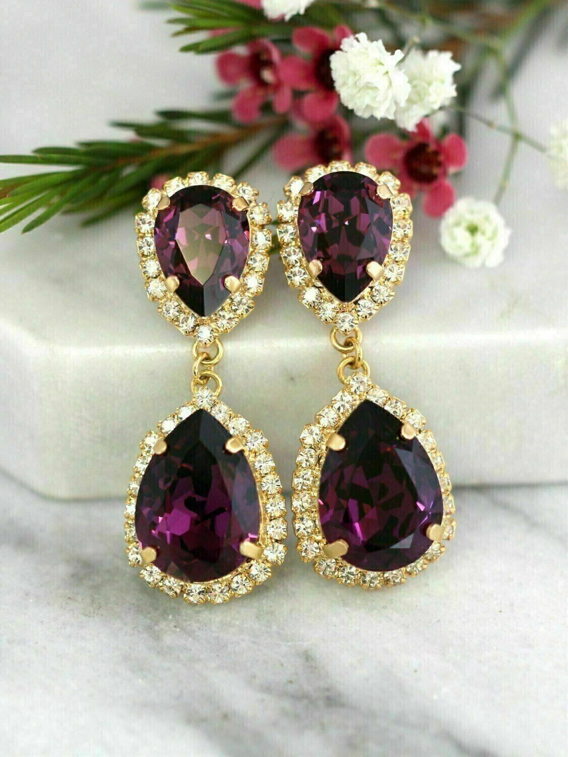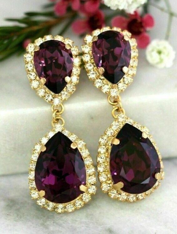 3Ct Pear Cut Lab Created Drop-Dangle Earring Amethyst14K Yellow Gold Plated