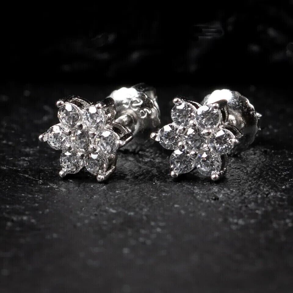 2Ct Round Cut Lab Created Diamond Unisex Stud Earrings 14K White Gold Plated