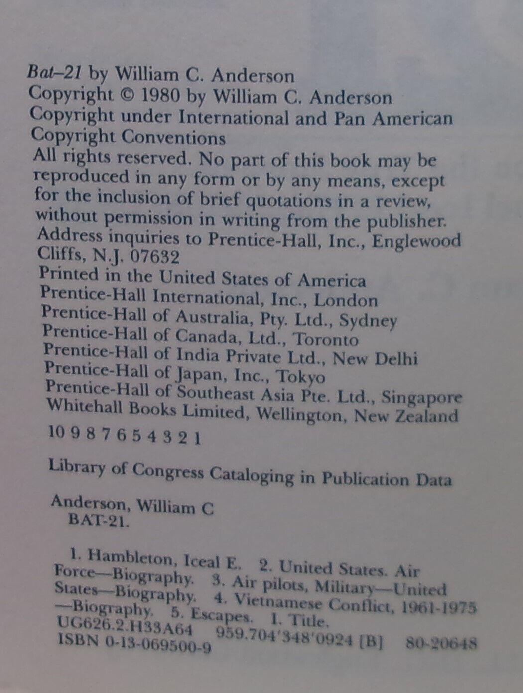 William C. Anderson BAT-21 First edition, first printing 1980 Film Vietnam War