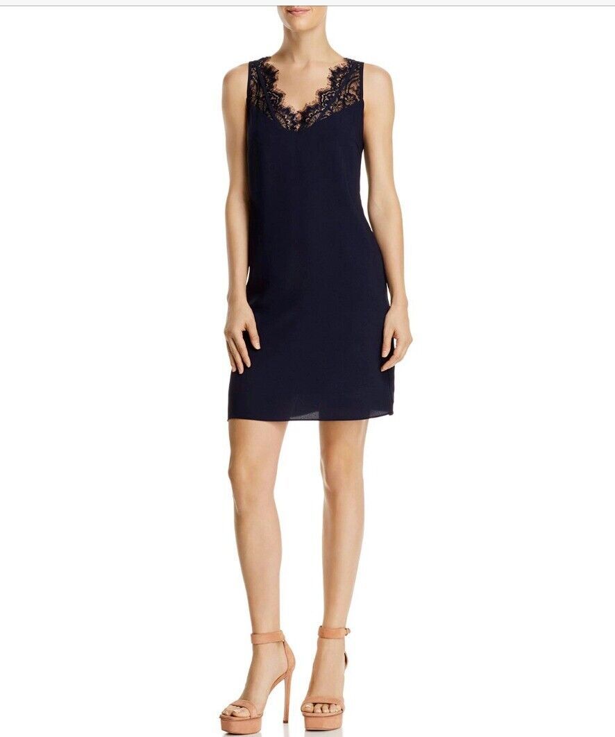 Aqua Women's Lace-Trim Shift Dress, Navy Size Medium