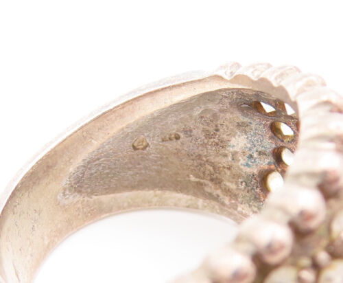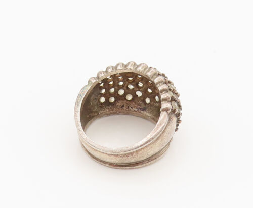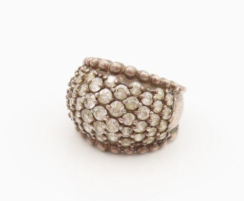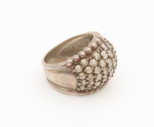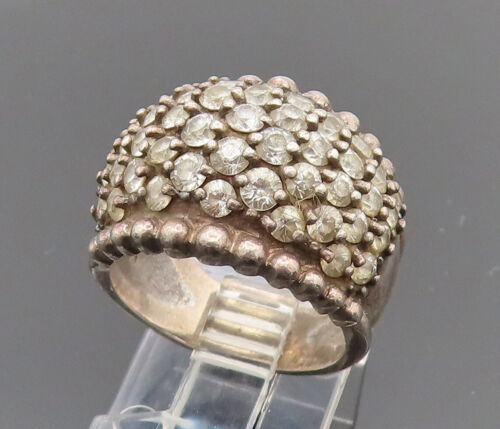 925 Silver - Vintage Beaded Edge White Topaz Cluster Dome Ring Sz 7 - RG26241