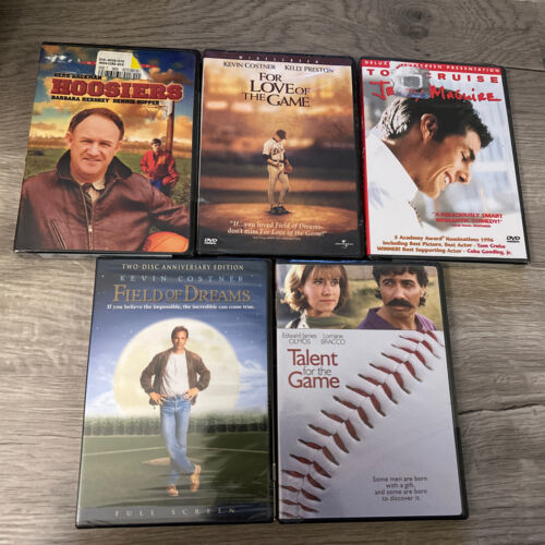 Lot of 5 BEST Sports Movies: Field of Dreams, Hoosiers, Love Of The Game, Jerry Maguire, Talent For The Game!! Kevin Costner, Gene Hackman, Tom Cruise!. Brand New. I'll throw in Draft Day / Used!! Shipped with USPS Media Mail.