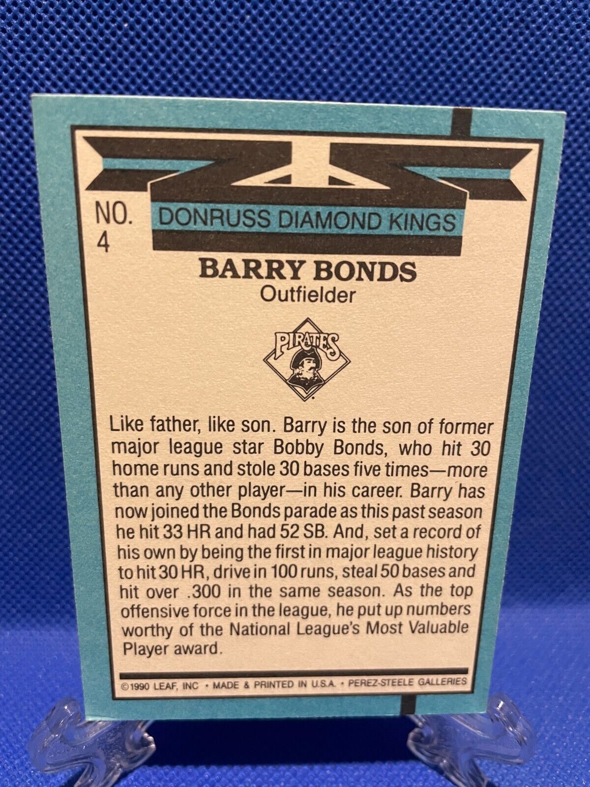 Barry Bonds 4 1990 Donruss Error Baseball Card