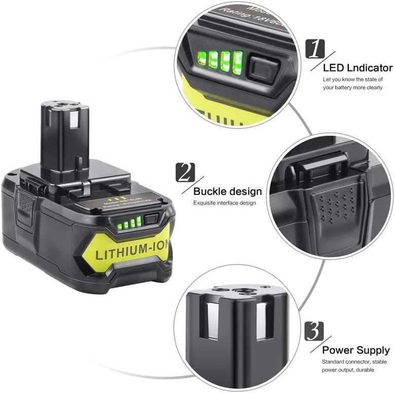 Brand New |Battery Type: Li-ion |Voltage: 18v. each COMPATIBLE: Compatible with Ryobi P102, P103, P104, P105, P107, P108, P109 and Fit All battery for Ryobi 18V ONE+ System Cordless Power Tools. (NOTE: Not fit for ryobi cordless saw P551, for ryobi 18v radio, lamp eg, for ryobi P742 for ryobi P746) WORKS IN HARSH CONDITIONS: This battery can work in cold conditions as low as 14 degrees Fahrenheit (-10 degrees celsius),letting you work around the clock and calendar SAFE RELIABLE: Stands with CE-/FCC-/RoHS-Certified for safety, tested by manufacturer to match OEM products. Built-in integrated microchip prevents overcharging and other malfunction to prolong battery life. Guaranty: 30 days money back, 12 months warranty. 24*7 hours prompt customer service.