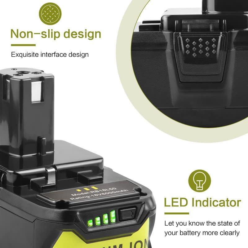 [2 Pack] 18V 6000Mah 18V Rb18L50 Replacement Battery For P102 Ryobi Lithium Ion