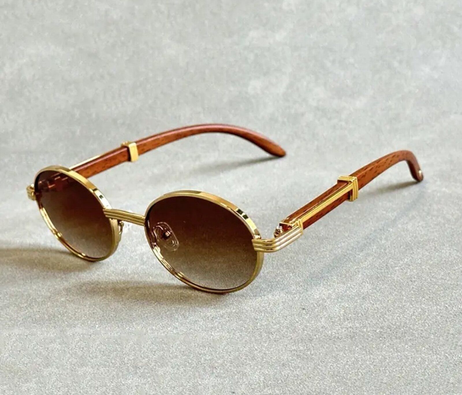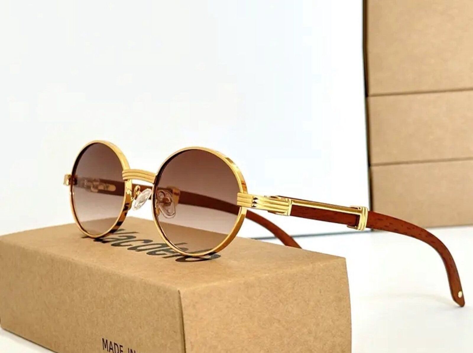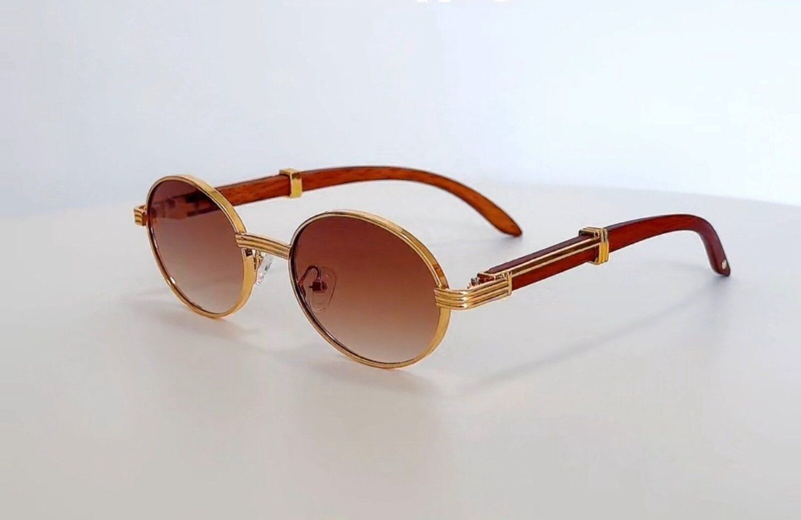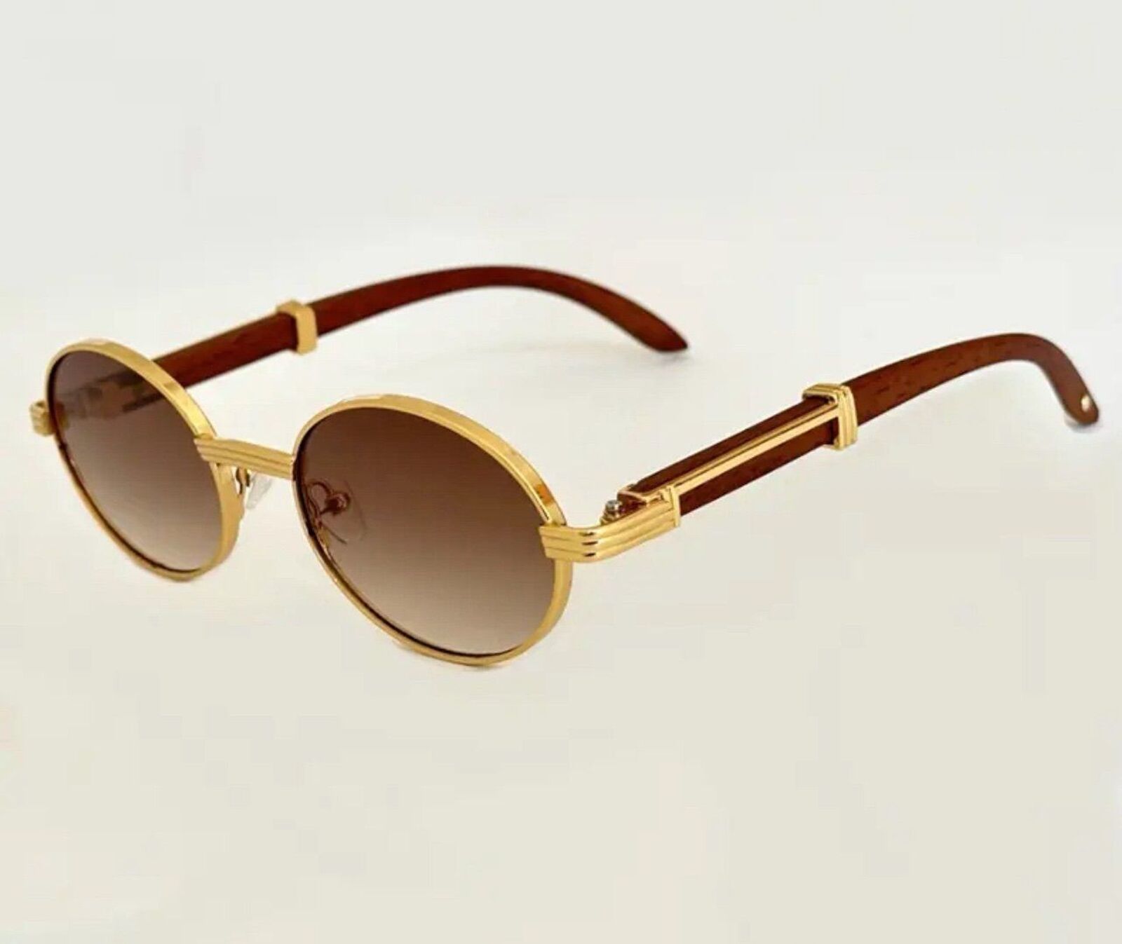 Oval Sunglasses Women 2024 Trendy Designer Wooden Sunglasses Men Luxury Fashion Glasses Vintage Lentes De Sol Mujer Zonnebril