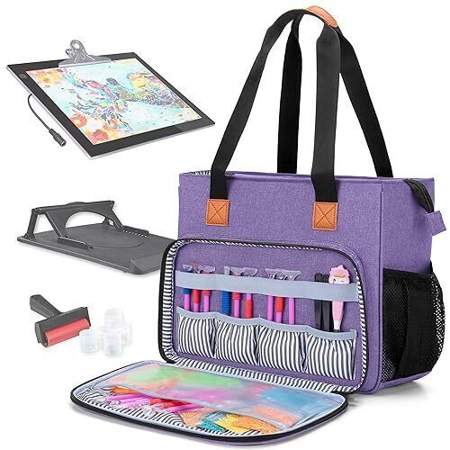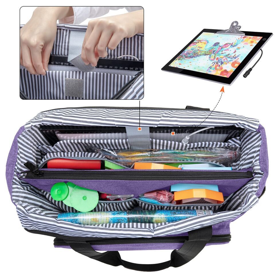 Purple Diamond Painting Carrying Case: A4 Light Pad Storage Bag for Tools & Acce