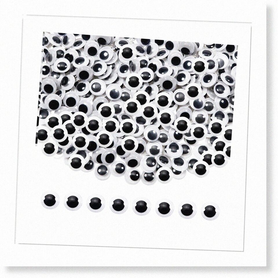 Introducing our brand new plastic wiggly eyes! These adorable eyes are 8mm in size and come in a pack of 300pcs or 150 pairs. With their self-adhesive feature, you can easily peel off the stickers and paste them onto your handmade dolls or DIY projects. No need to worry about them falling off easily! These wiggly eyes are not only a decorative accessory but also a source of endless fun. Perfect for birthday parties, family time, office decor, and other crafts. Handmade with love, these eyes are suitable for home decor as well. Just a friendly reminder, the sticker on the back of the eyes is incredibly strong, so you may need tweezers or other tools to peel it off. And remember, avoid getting the back of the eyes wet as it may affect the stickiness. Please note that this product is not suitable for children and should be used under parental supervision to prevent accidental ingestion. Get your creative juices flowing with our wiggly eyes today!