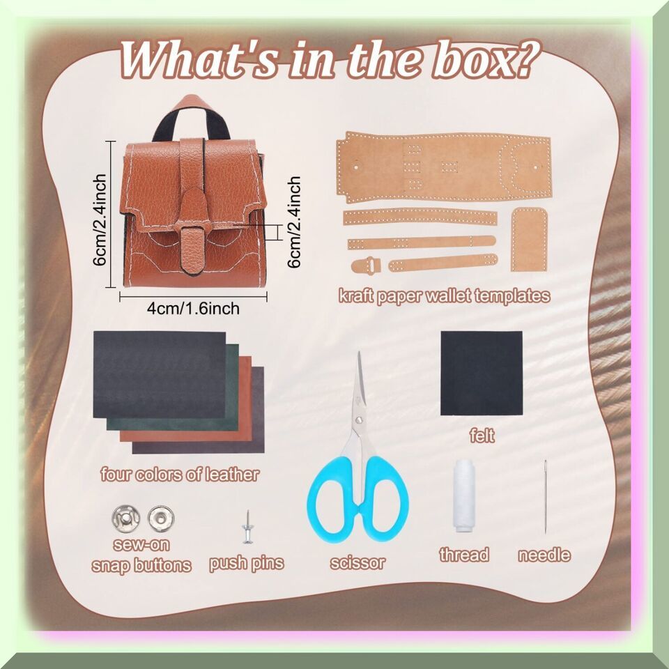 3. Seamstress Essentials: Equipped with 2pcs push pins, 2 sharp needles, and 2 blunt needles, our Leather Purse DIY Kit provides you with all the necessary tools to bring your vision to life. From securing the leather to stitching intricate details, these high-quality accessories ensure a seamless and enjoyable crafting experience.