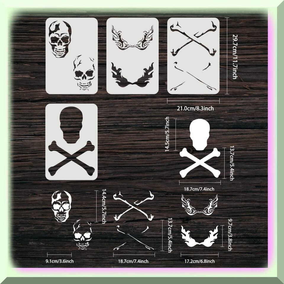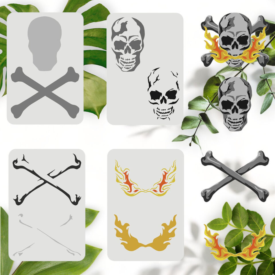 Pirate Skull Airbrush Template Set - 4 Pcs, 11.7x8.3 inch A4 Size, Layered Desig