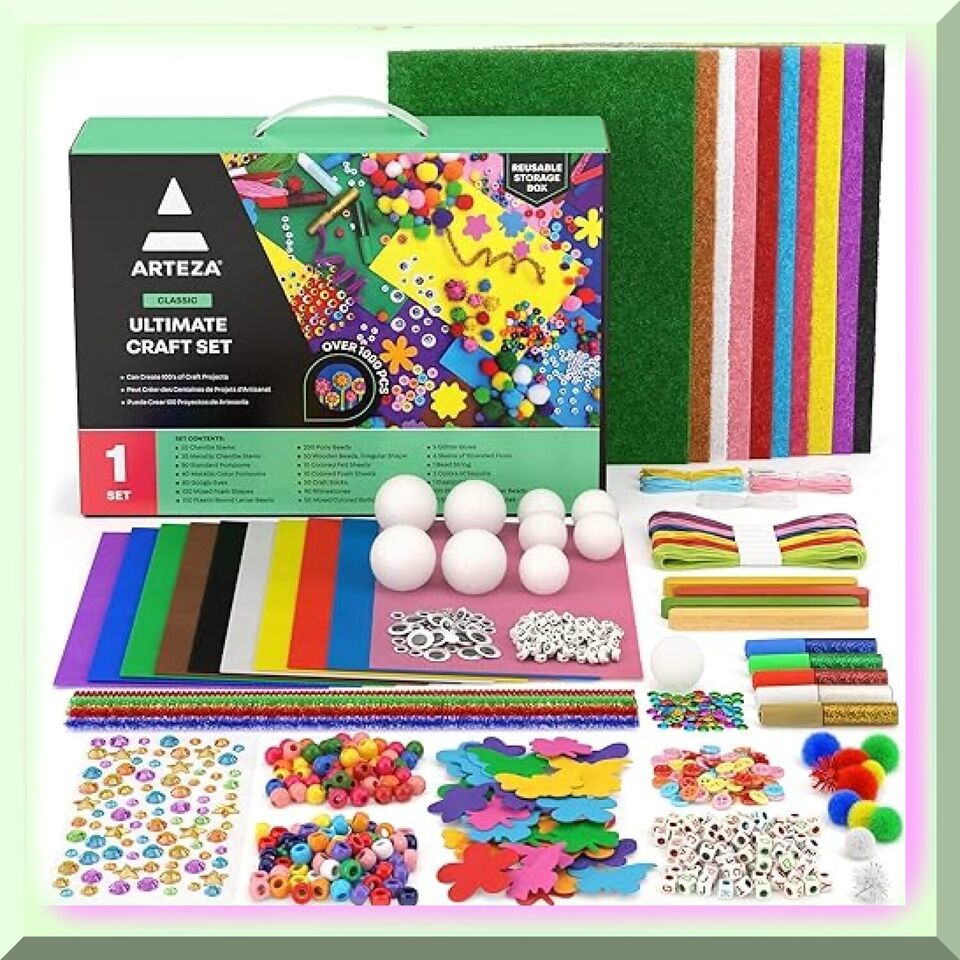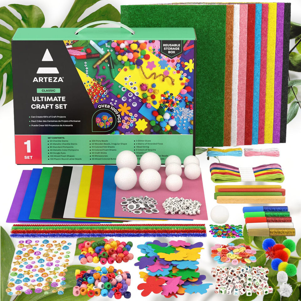 Ultimate Craft Kit: 1,000+ Pieces of Felt, Pom Poms, Googly Eyes, Glitter, and P