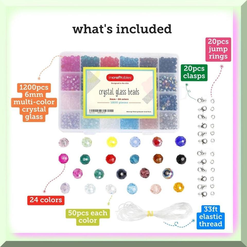 1. Dazzling Variety: Our value pack offers an impressive assortment of 24 vibrant colors, with each color represented by 50 pieces of 6mm multi-color crystal glass beads. This ensures endless creative possibilities for your jewelry making projects.
