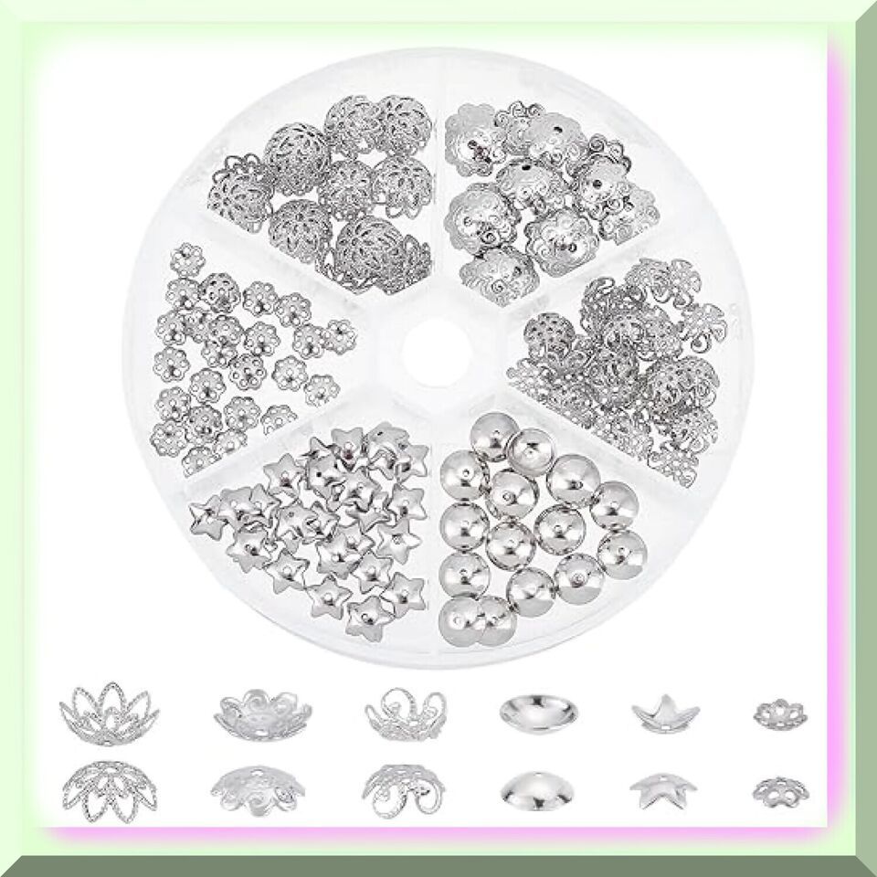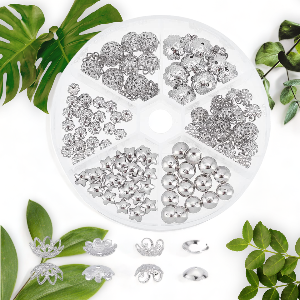 304 Stainless Steel Bead Cap Set - 180pcs, 6 Styles - Ideal for Jewelry Making -